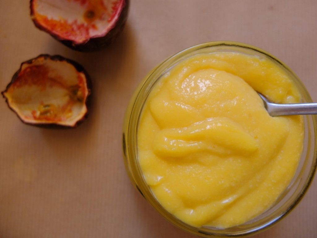 Une recette de crème aux notes exotiques aujourd’hui : la crème aux fruits de la passion ! Un peu sur le même principe que le lemon curd que j’adore et que je vous présenterai dans quelque temps, le passion curd, c’est frais, super bon et original. On peut le déguster à la cuillère, comme une pâte à tartiner, ou l’utiliser pour fourrer des gâteaux par exemple.