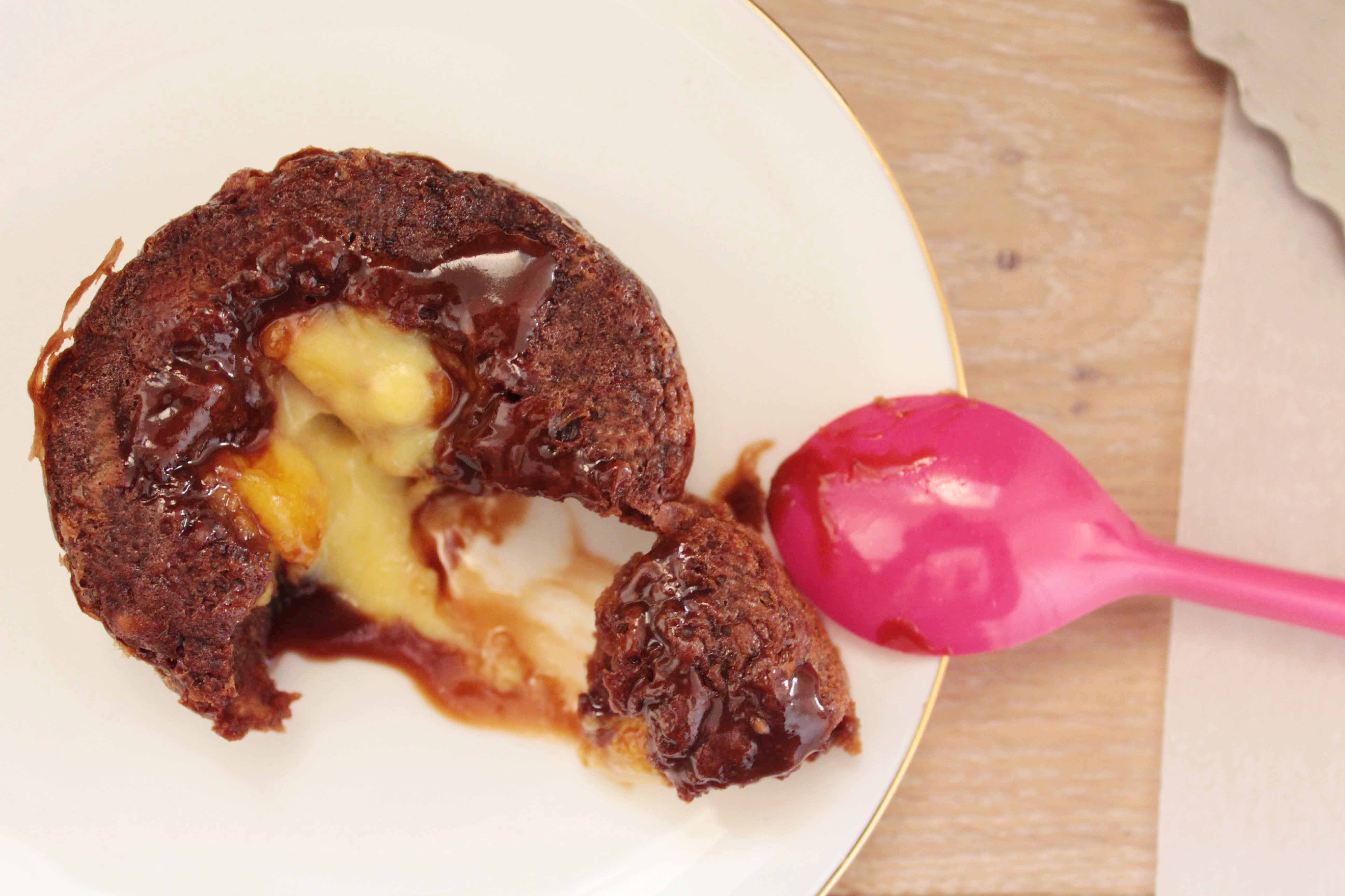 moelleux coulant au chocolat au lait, cœur de passion curd