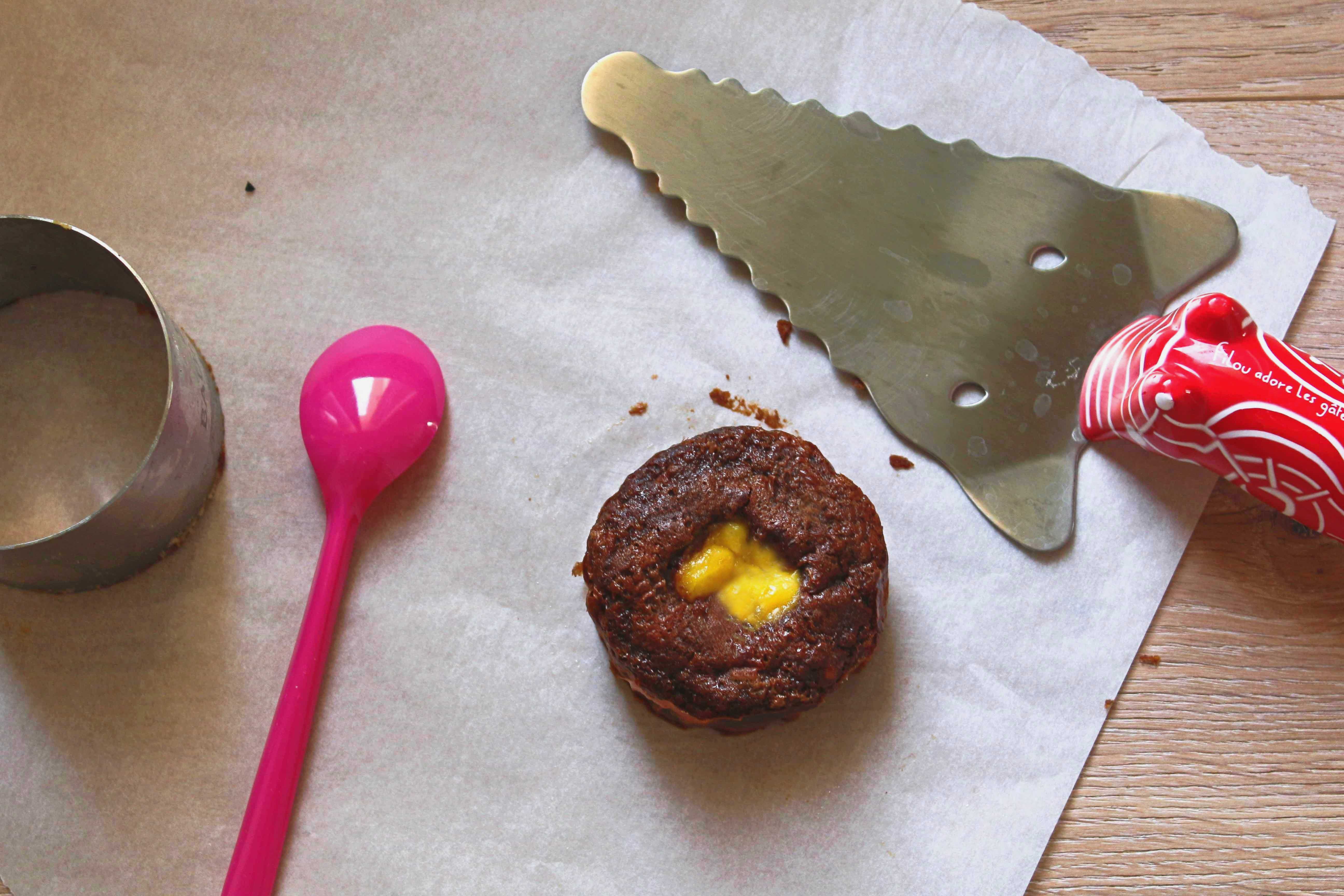 moelleux coulant au chocolat au lait, cœur de passion curd