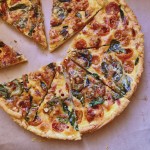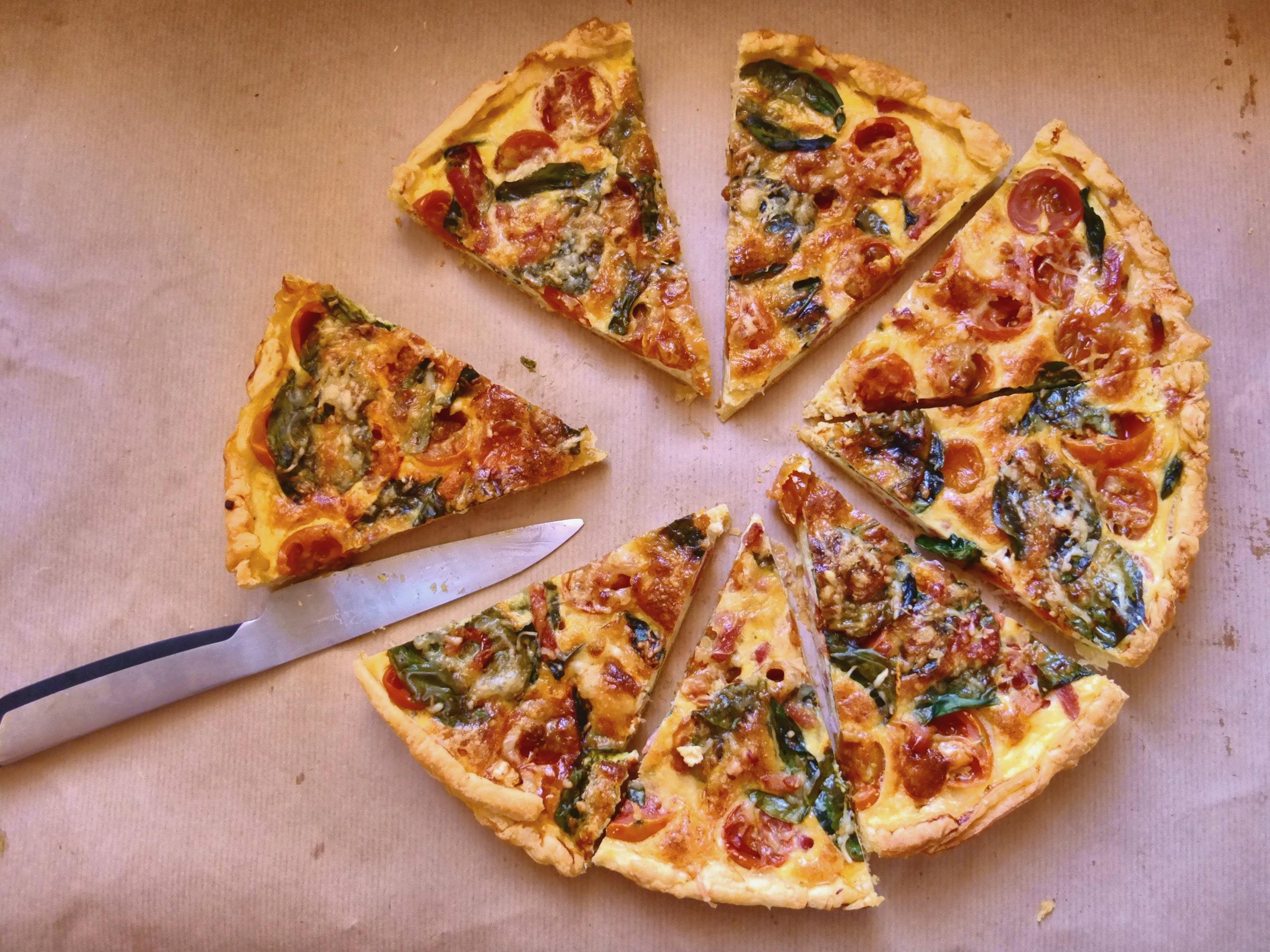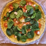 Tarte salée aux tomates, chèvre, basilic et lardons