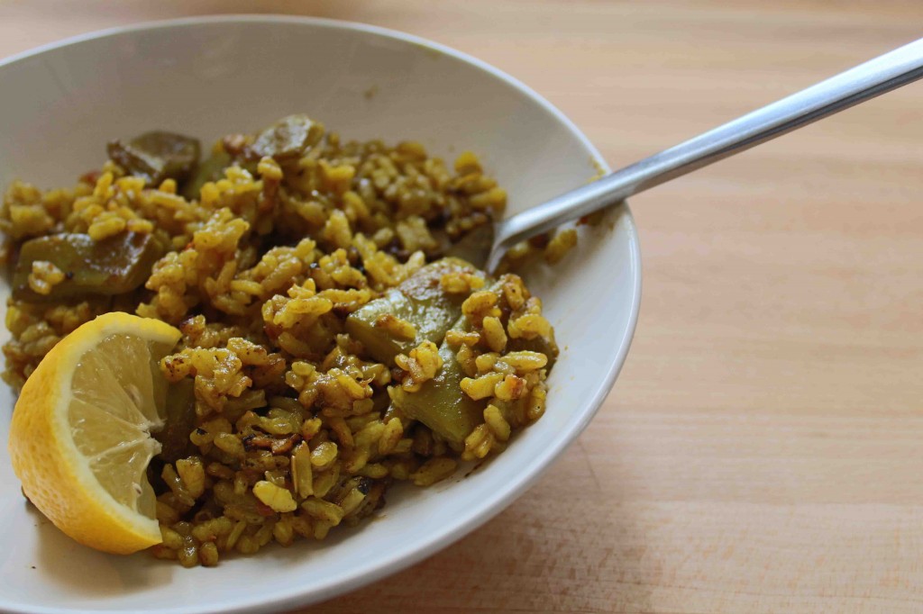 Quant aux « épices » paprika et safran … ça suffit à donner une jolie couleur dorée au riz … et bien sûr le meilleur c’est le fond de la poêle tout croûté …