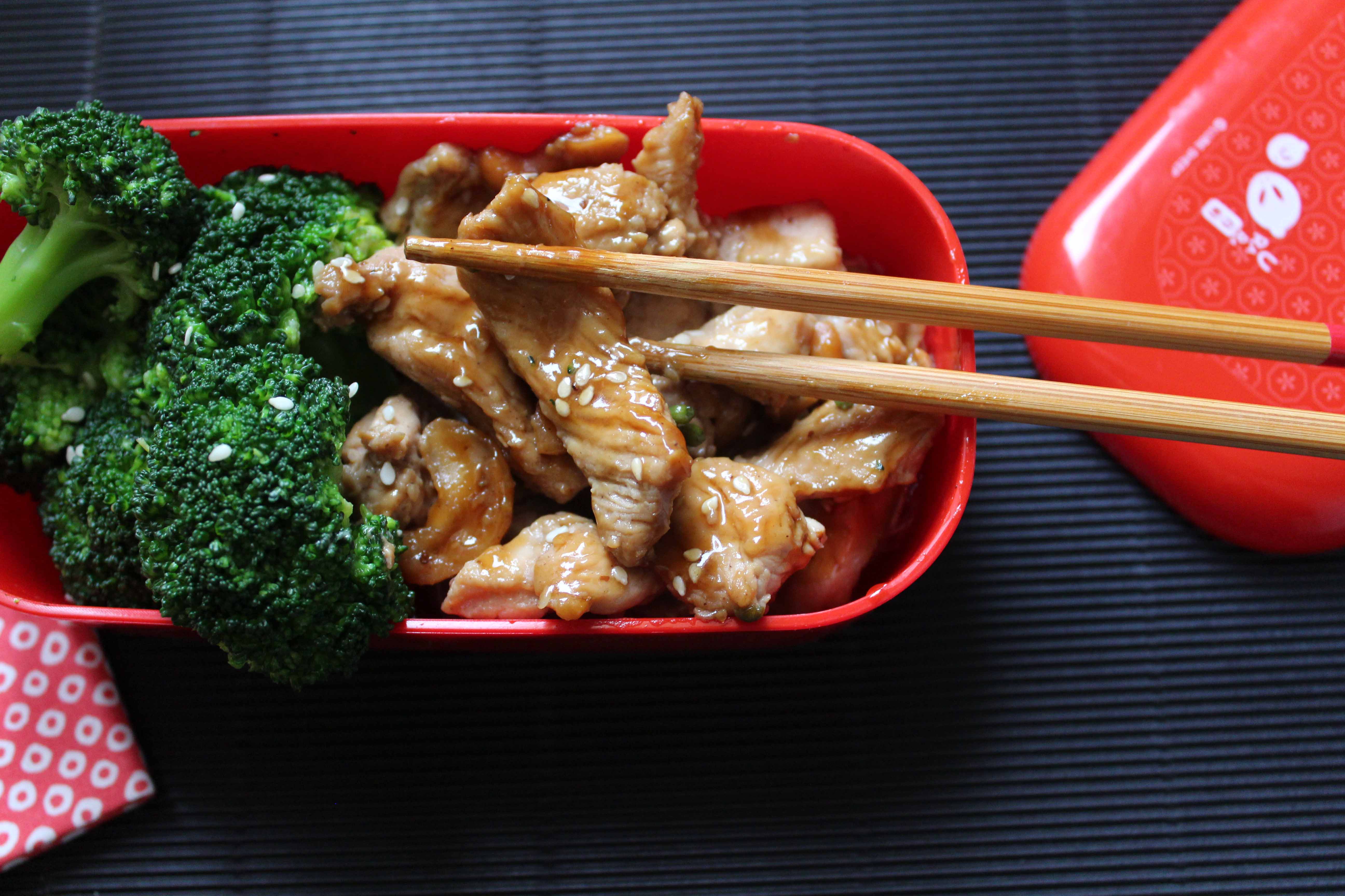 Bento de poulet aux noix de cajou, sauce yakitori, gingembre, coriandre
