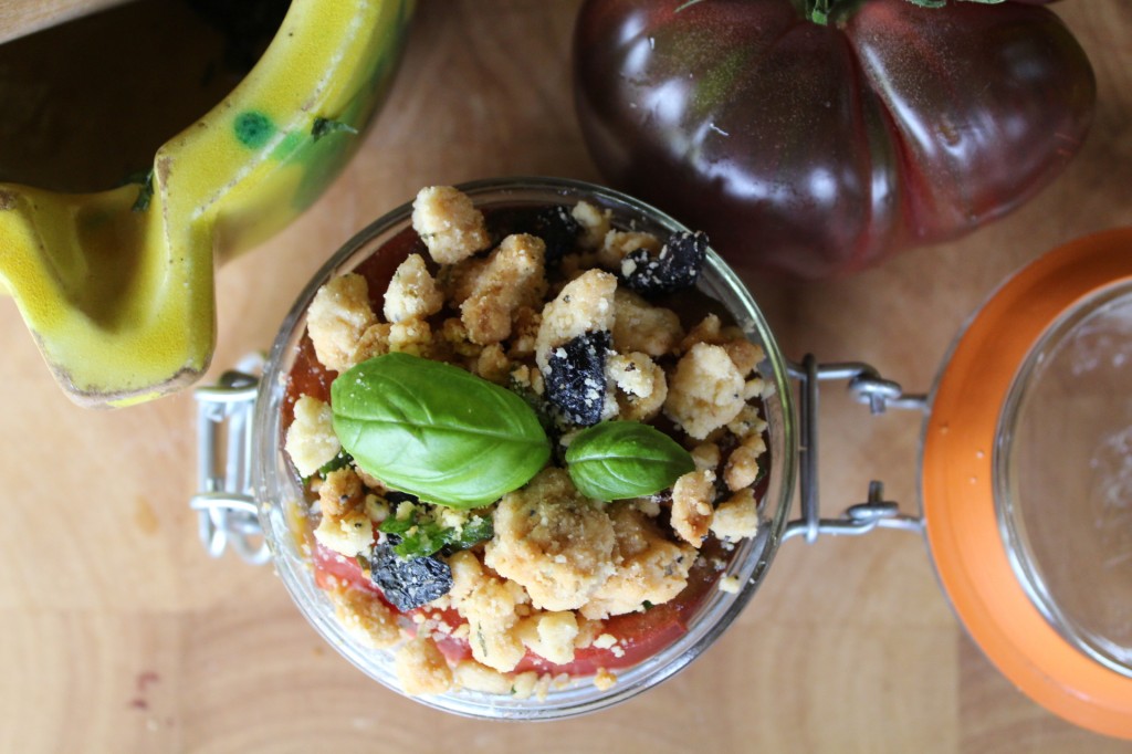 J’adore l’idée du crumble avec les tomates, je piquerai certainement l’idée pour ma prochaine salade! Merci pour cette jolie recette et bravo!