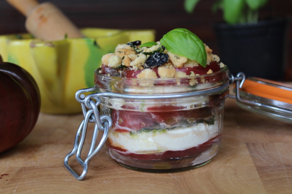 […] cette battle food décidément très incitatrice à la création, un bocal proposé par Cécile de royalchill.com : un mille-feuille de tomates noires, crumble noisettes-olives. À réaliser avec les fameuses […]