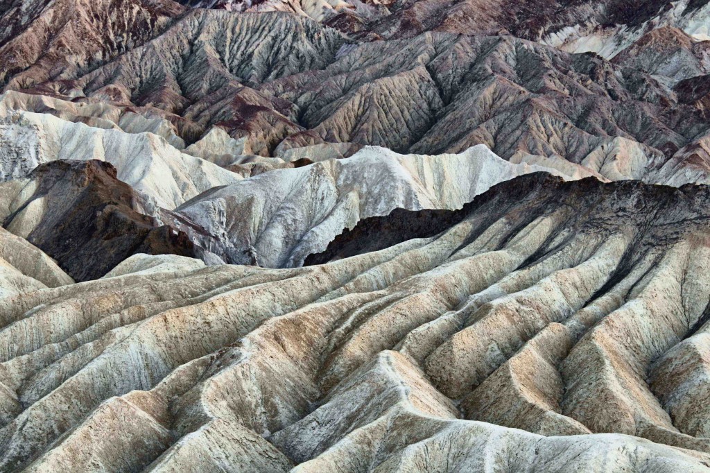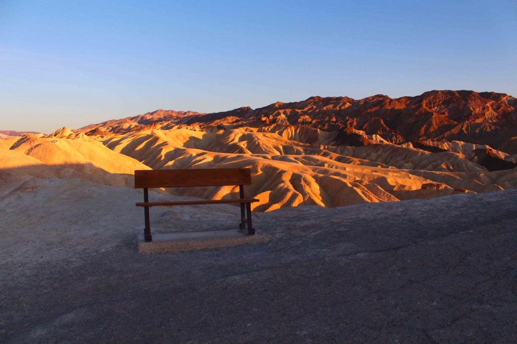 Nous avons presque terminé la visite du parc et décidons de rentrer pour ne pas rater le coucher du soleil sur Zabriskie Point, le premier point de vue à l’entrée du parc, qui se situe juste à côté de notre hôtel. Le spectacle est vraiment incroyabel et la forme des rochers est vraiment particulière !
