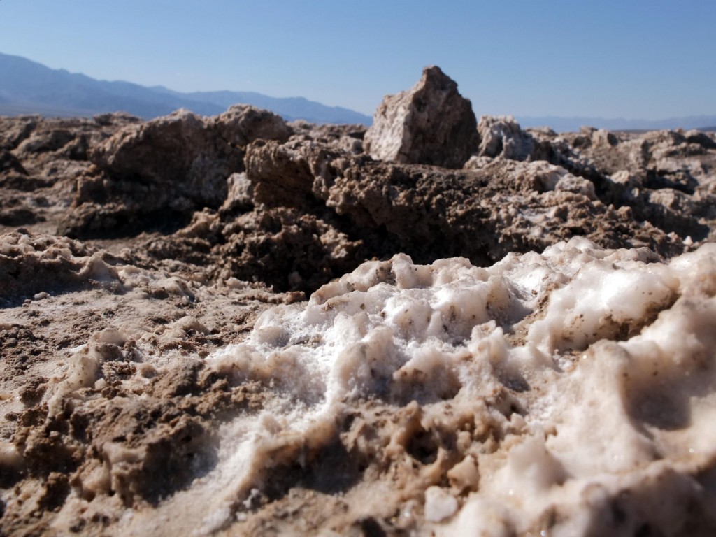 Puis nous filons vers Badwater et le Devil’s golf course : C’est un désert de sel et ici on à 855 mètres en dessous du niveau de la mer. Des étendues de sel s’étendent à perte de vue et l’on peut même fouler le sel pied. Dire qu’ici, il y avait la mer avant, cela paraît fou.