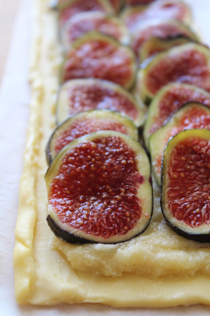 Tranchez très finement les figues et disposez-les sur la frangipane.