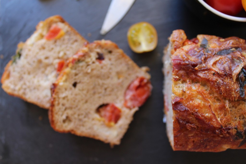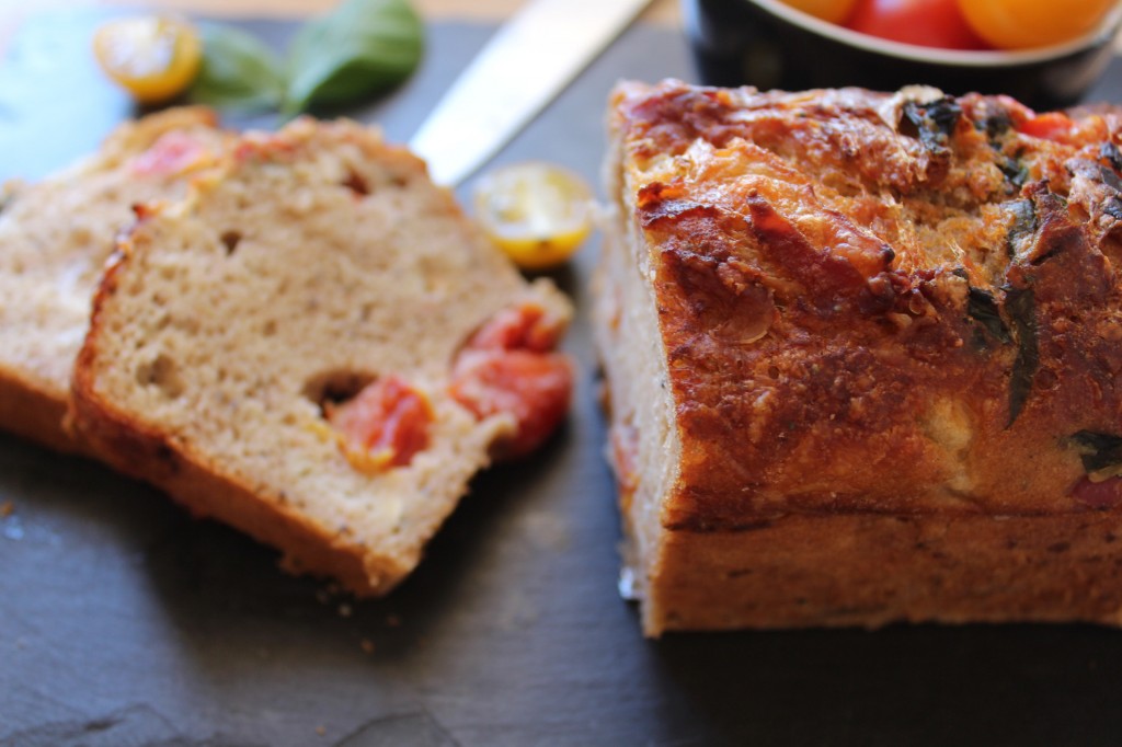 Je ne prépare pas souvent de cakes salés, pourtant lorsque l’on a pas grand chose dans ses placards ou que l’on veut faire un apéritif ou un pique-nique, c’est vraiment l’idéal. Pour moi, un cake réussi c’est avant tout un cake qui n’est pas sec, pas étouffant et bien moelleux. C’est le cas avec ce cake ! J’ai trouvé la recette de la base dans le livre « tartes, quiches and cie » des éditions Marabout, qu’une amie m’avait prêté, et j’y ai rajouté les ingrédients qui me plaisaient : des tomates cerises pour le côté légumes, du chèvre et du jambon de parme pour le côté réconfortant ! On peut le personnaliser à l’infini, j’y ai rajouté des graines de pavot, pour le côté croquant, un peu de parmesan, et des herbes pour l’aromatiser !