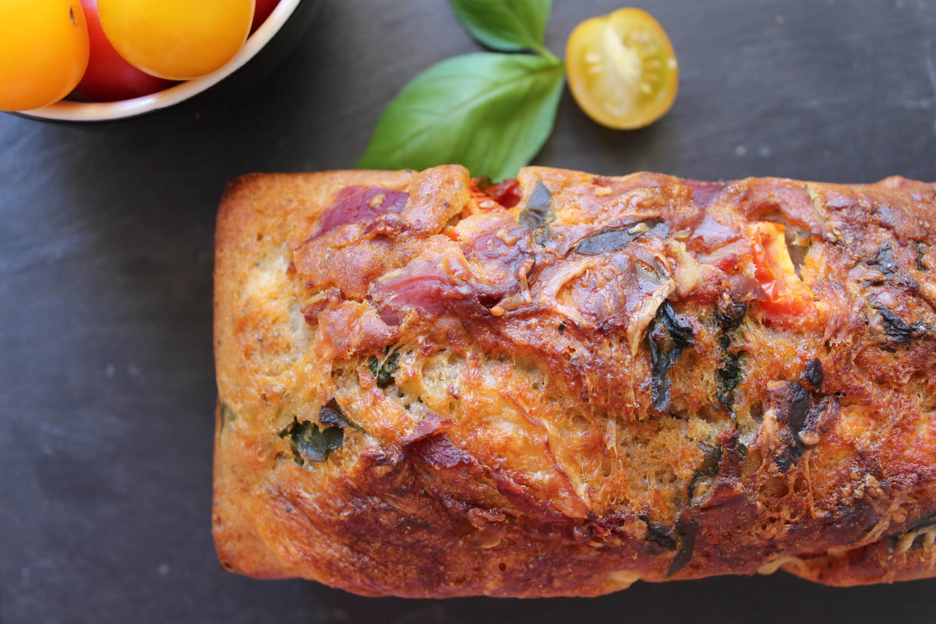 Une recette de caké salé : au jambon de parme, tomates et chèvre