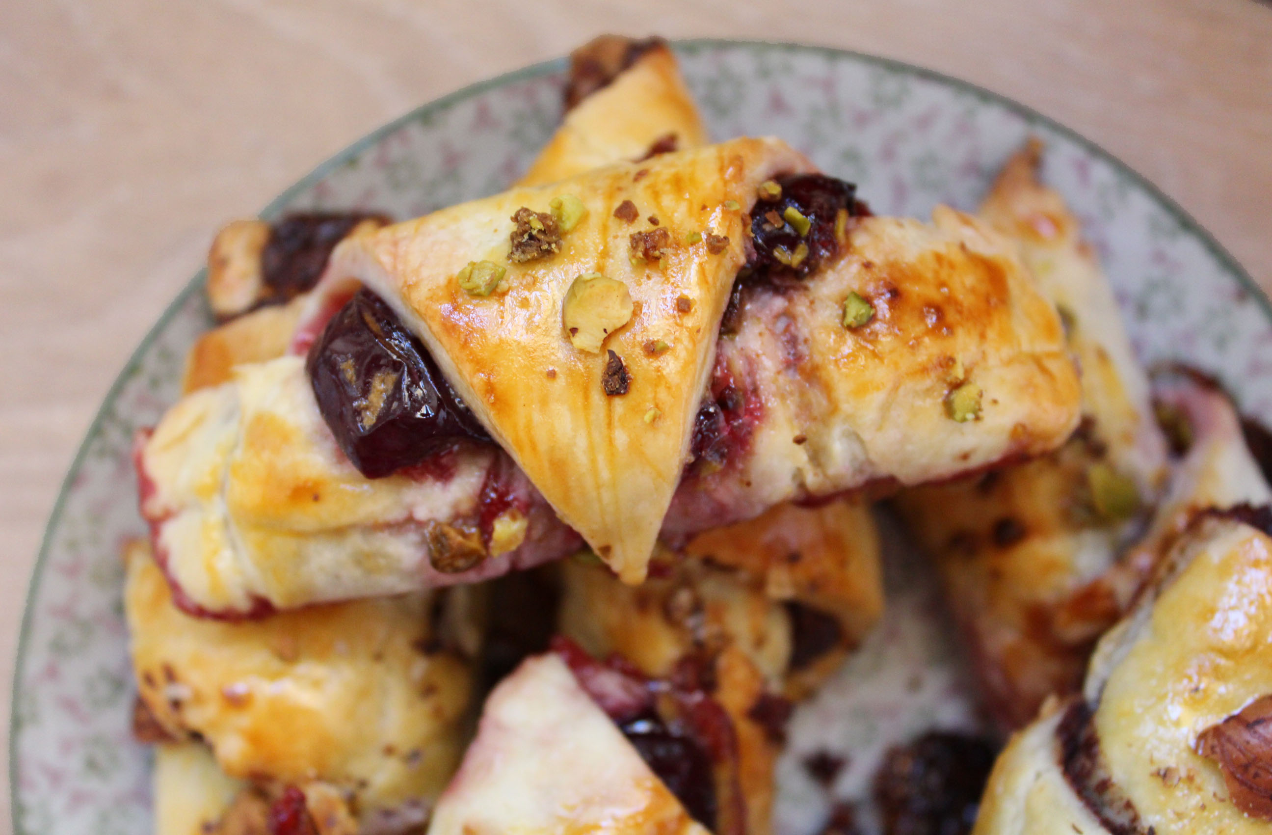 Rugelach fourrés à la confiture de cerise et pistaches caramélisées