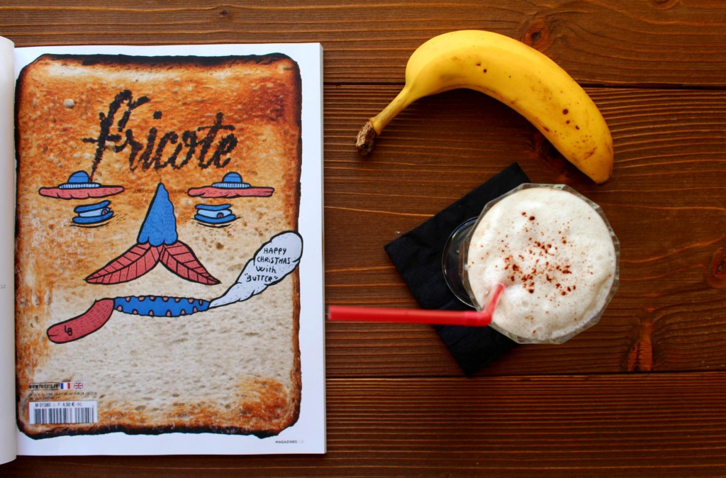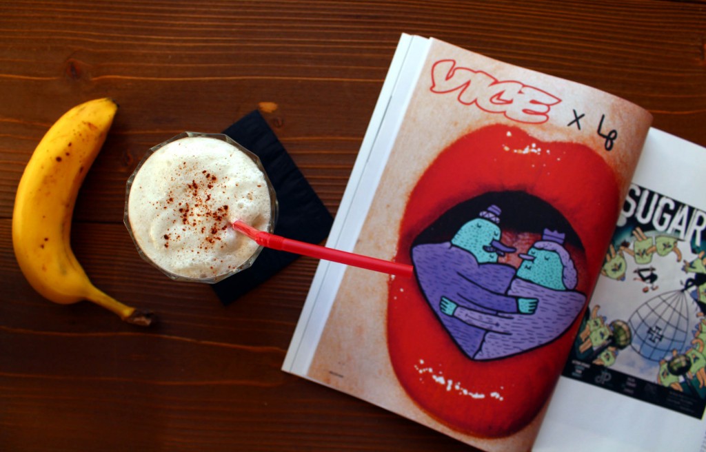 Aujourd’hui on va parler dessin, magazines et milkshake dans notre rendez-vous Read & Drink, et pour une fois je n’ai pas eu à chercher l’inspiration très loin. The Recover Project est la toute première publication de mon ami Lucas Beaufort. Sponsorisé par la marque Converse, ce livre, que j’ai eu la chance de découvrir en avant-première, fait vraiment partie de mes préférés du moment. Avec un concept vraiment novateur, The Recover Project mêle le dessin à la photo en compilant et réinterprétant des couvertures de magazines de skateboard essentiellement mais aussi de snowboard et lifestyle. Le résultat : un livre vraiment original qui nous transporte dans l’univers décalé, coloré et insouciant de son créateur. Feuilletez-le en sirotant une boisson à son image : un milk shake chaud-froid chocolat-banane-lait de coco et vous serez immédiatement propulsé dans une autre dimension !