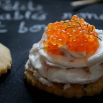 Sablés ronds et bons de Michel et Augustin garnis au fromage frais et au saumon