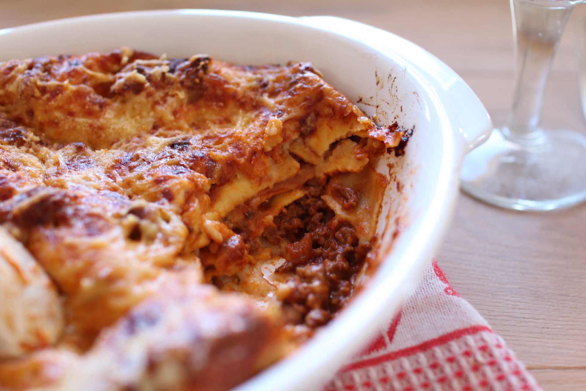 recette de lasagnes au porc, au bœuf et au vin rouge
