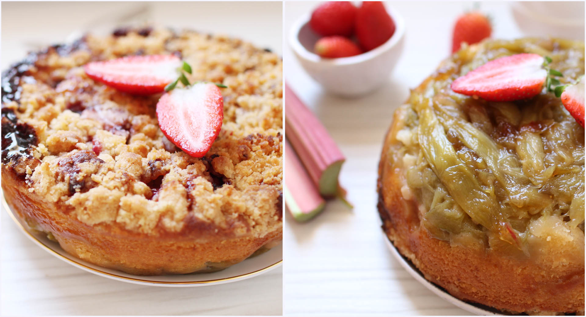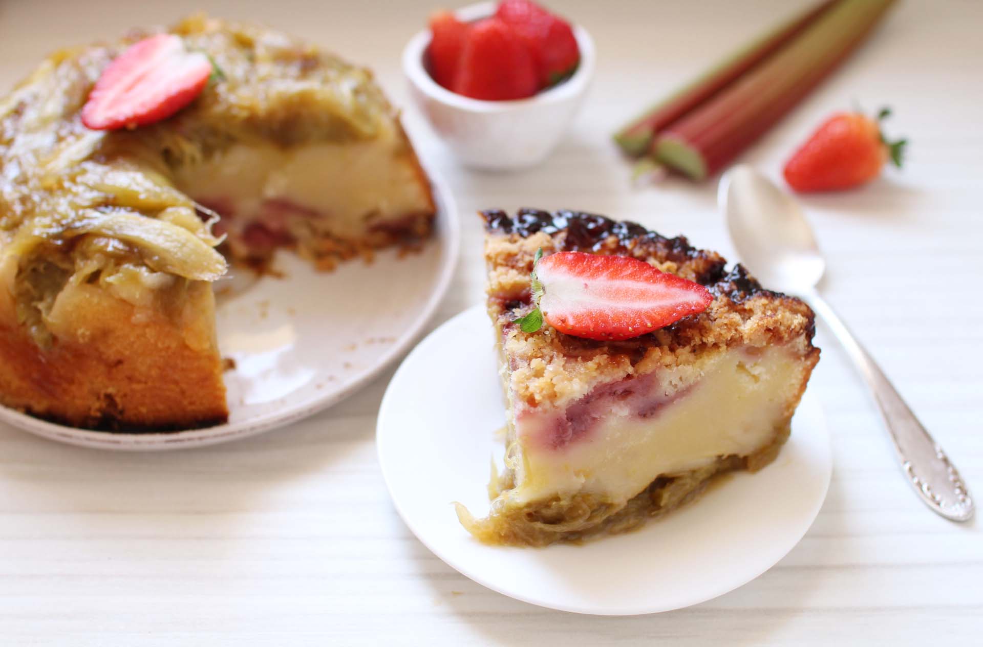 un gâteau réversible, j’adore l’idée! mais si en plus tu y ajoutes des fraises et de la rhubarbe, alors là je fonds!