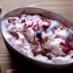 Une recette de glace au yaourt et au kiri de christophe Felder revisitée avec une garniture cheesecake spéculoos-myrtilles