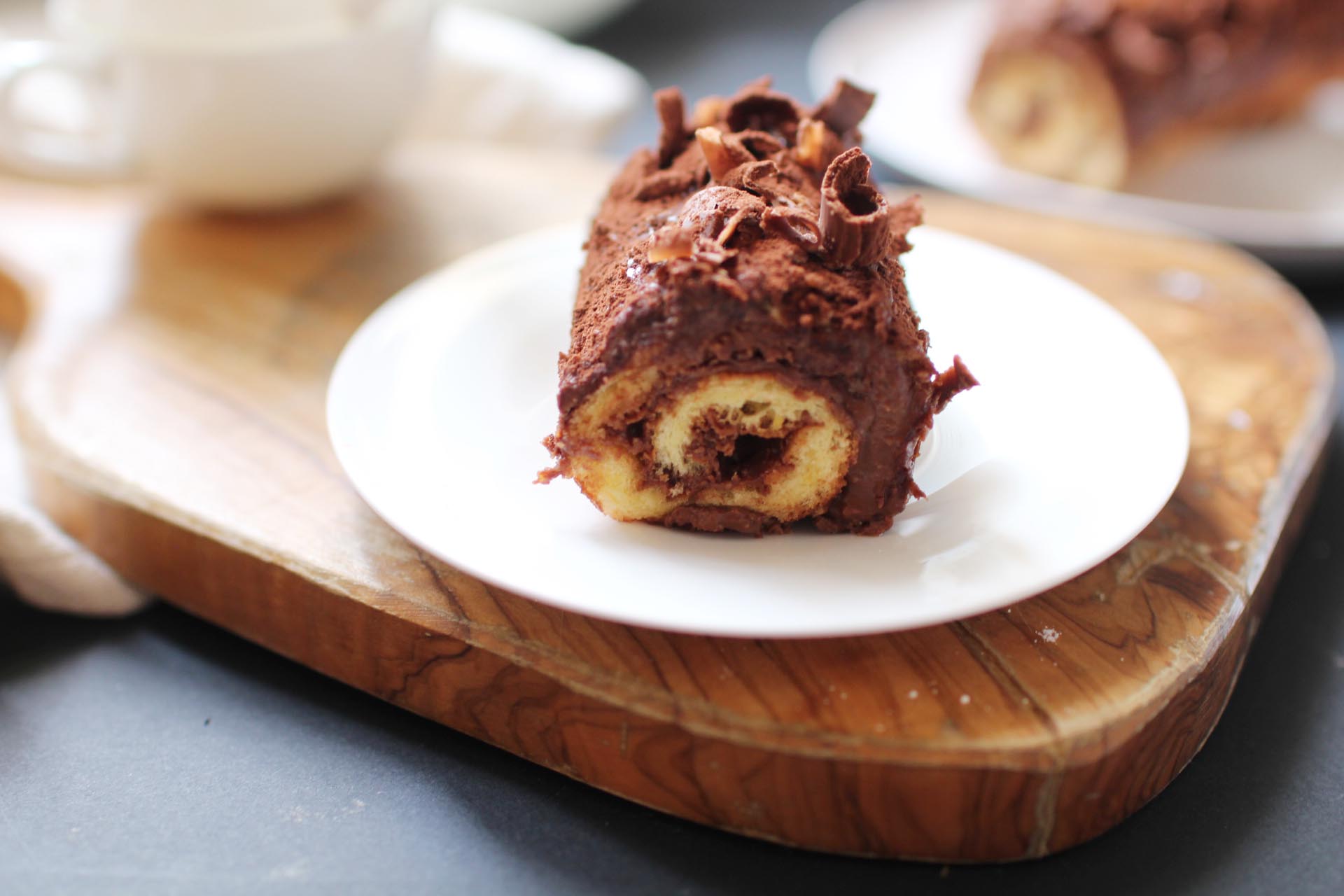 Roulez en serrant bien puis remettez une couche de pâte à tartiner sur le dessus.