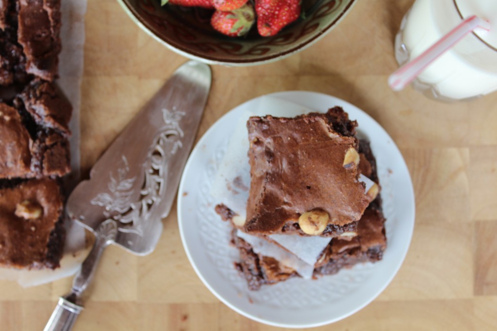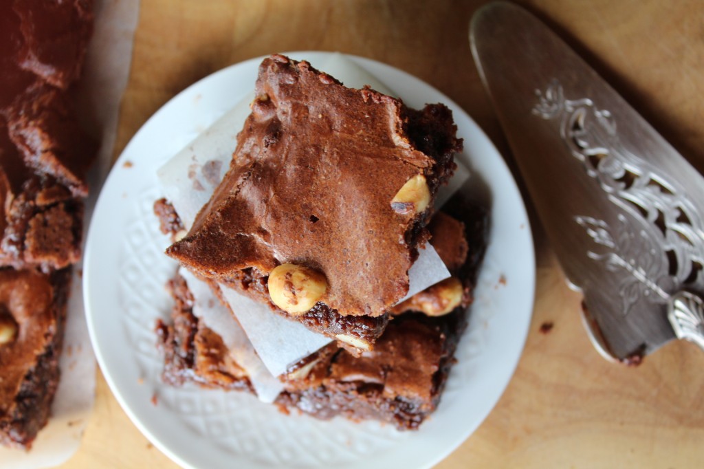 Après le délicieux brownie marbré aux framboises que j’avais préparé il y a quelques temps, j’ai voulu tester une autre recette du livre Brownie comme à New-York des éditions Marabout’ j’ai modifié un peu les proportions pour le faire à mon goût et il était juste parfait. Avec quelques fruits et un verre de lait, c´était une tuerie : une croûte croustillante, un coeur moelleux légèrement coulant et un bon goût de noisettes : ultra addictif ! Et le bonus : il est sans farine, et donc sans gluten, idéal pour tous les intolérants !