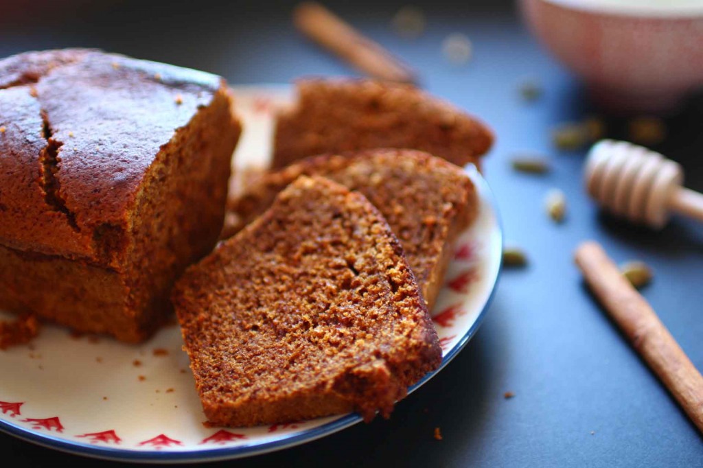 Tamisez ensemble la farine le bicarbonate et les épices. Faites mousser l’œuf avec le miel dans un autre récipient. Ajoutez le lait puis le beurre refroidi. Incorporez ensuite les poudres et mélangez jusqu’à obtenir une consistance homogène. Versez cette préparation dans 2 moules à cake beurrés et farinés puis enfournez pendant 50 min environ.