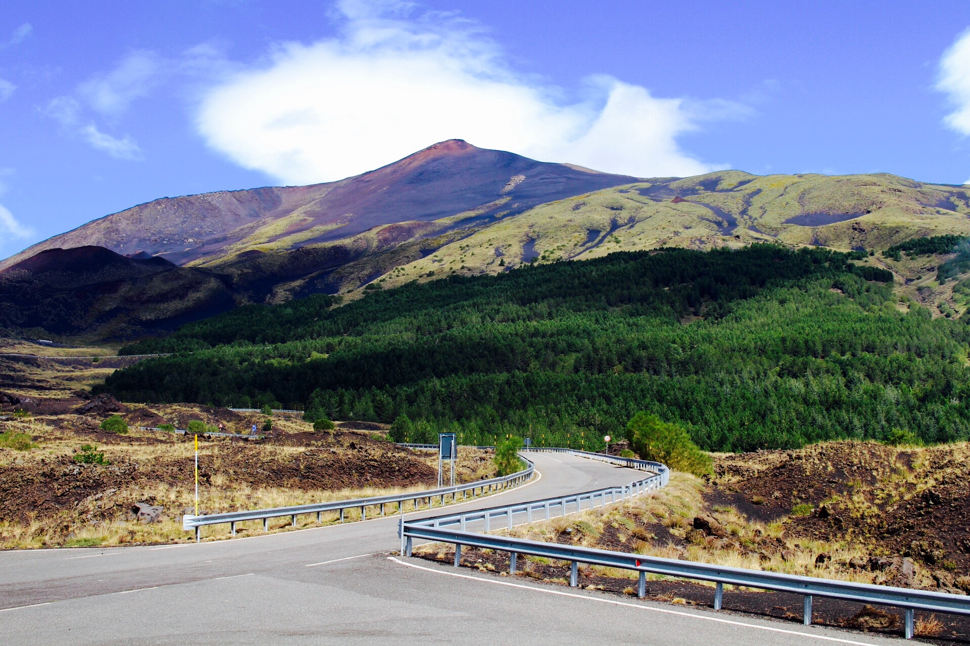 La route qui monte au refuge de Sapienza annonce déjà la couleur. Aux alentours, champs de lave et paysages volcaniques.