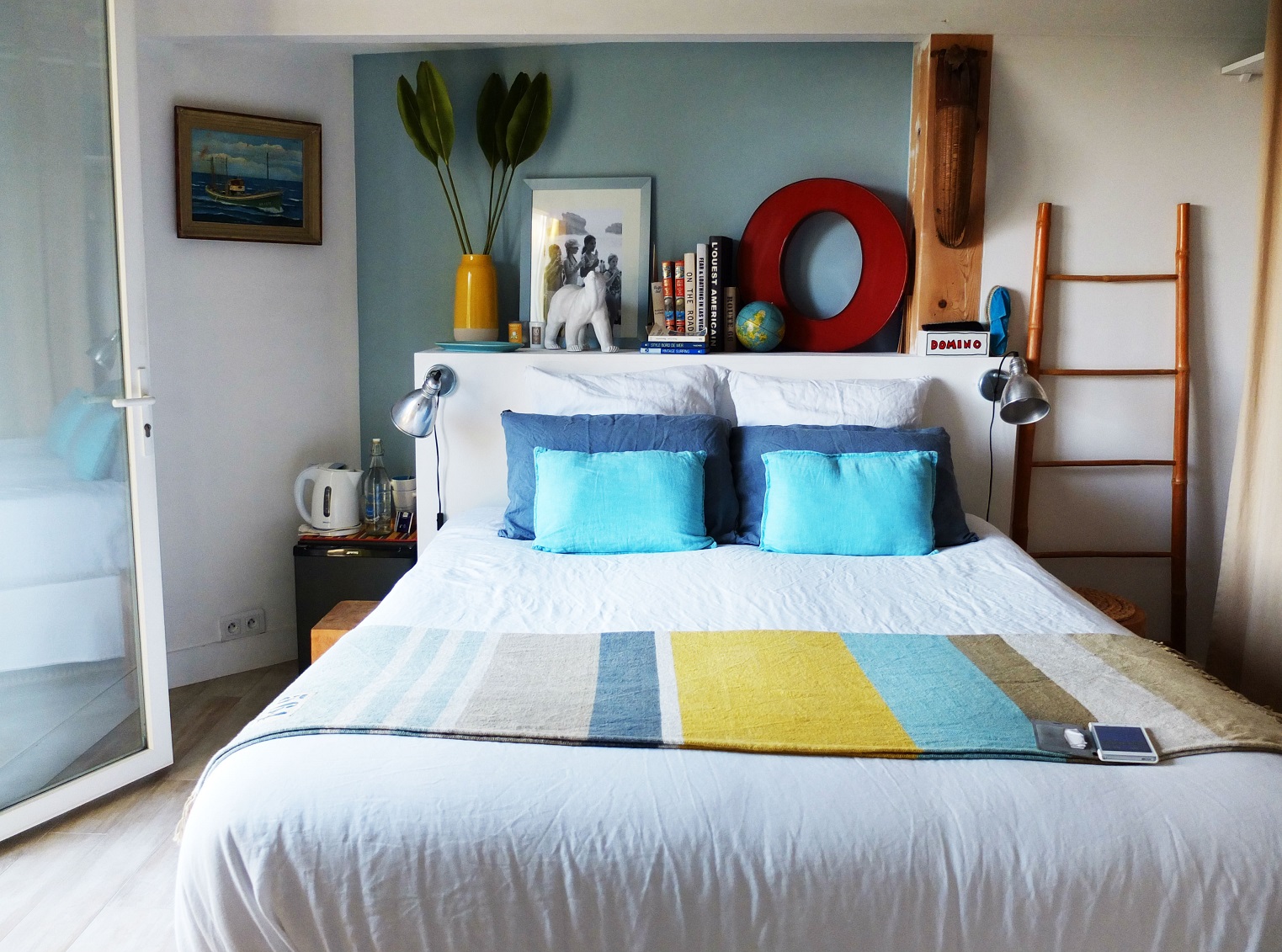 Murs blancs en bois, couleurs pastel, fenêtres en forme de hublot, matières brutes, détails vintage, ambiance cosy… les amoureux de la déco s’y sentiront comme un poisson dans l’eau. C’est ce qui m’a particulièrement séduite ici.