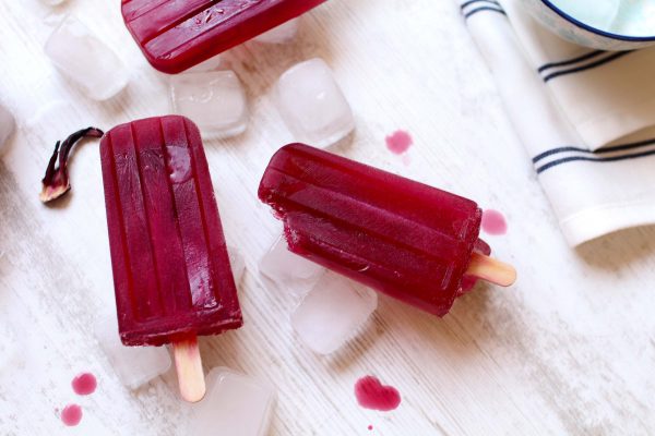 Mais même si je préfère les glaces décadentes et bien caloriques, ça ne m’empêche pas d’essayer de nouveaux parfums et d’aimer parfois les glaces à l’eau lorsqu’elles ont beaucoup de goût. Et c’est le cas de celles-ci ! Le week-end dernier, alors qu’il faisait si chaud, j’ai eu envie d’une glace à l’eau façon thé glacé pour me rafraîchir. Elles sont vraiment ultra-simples à préparer et les fleurs d’hibiscus apportent un goût inédit, un peu acidulé et très rafraîchissant !