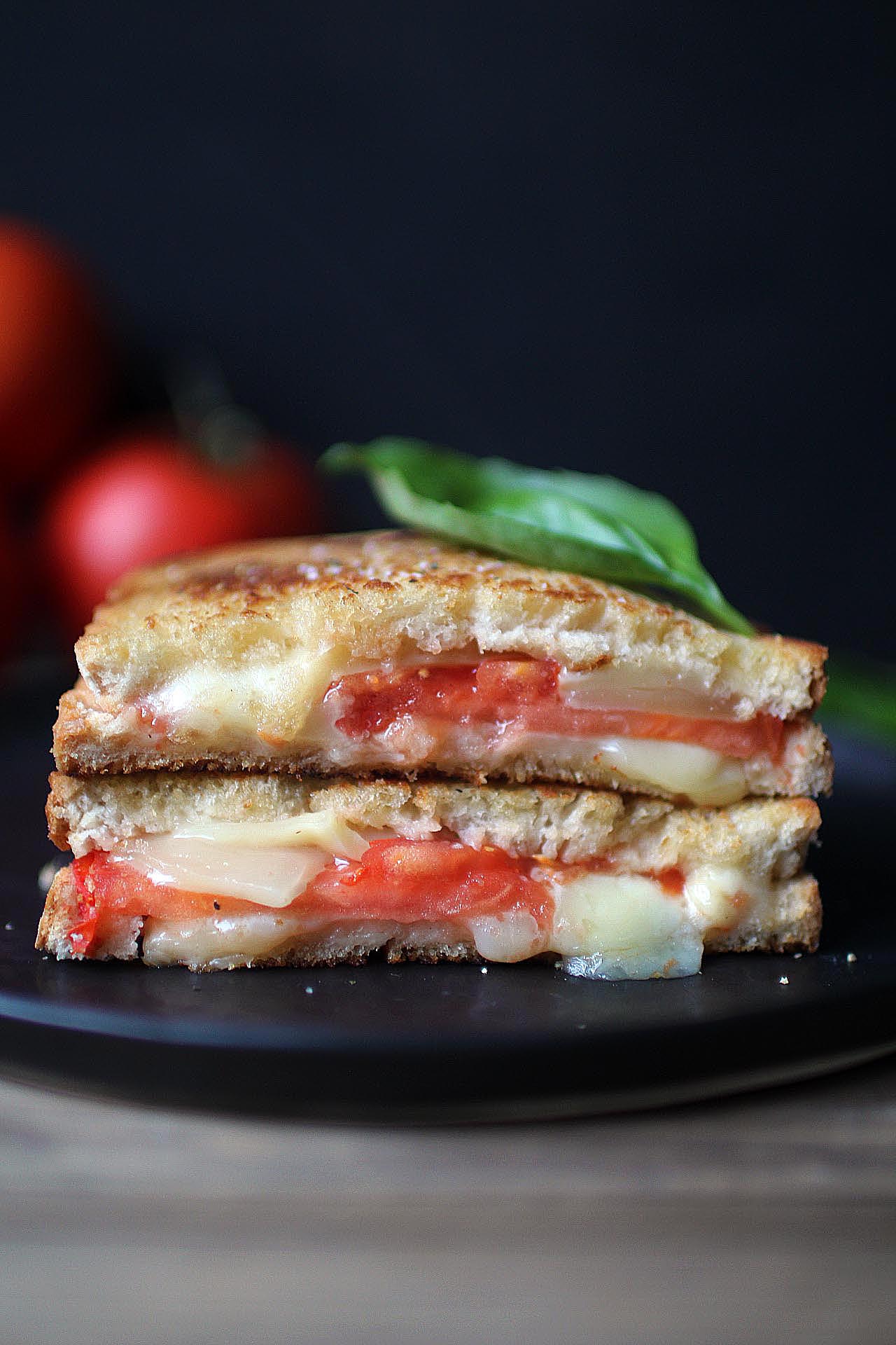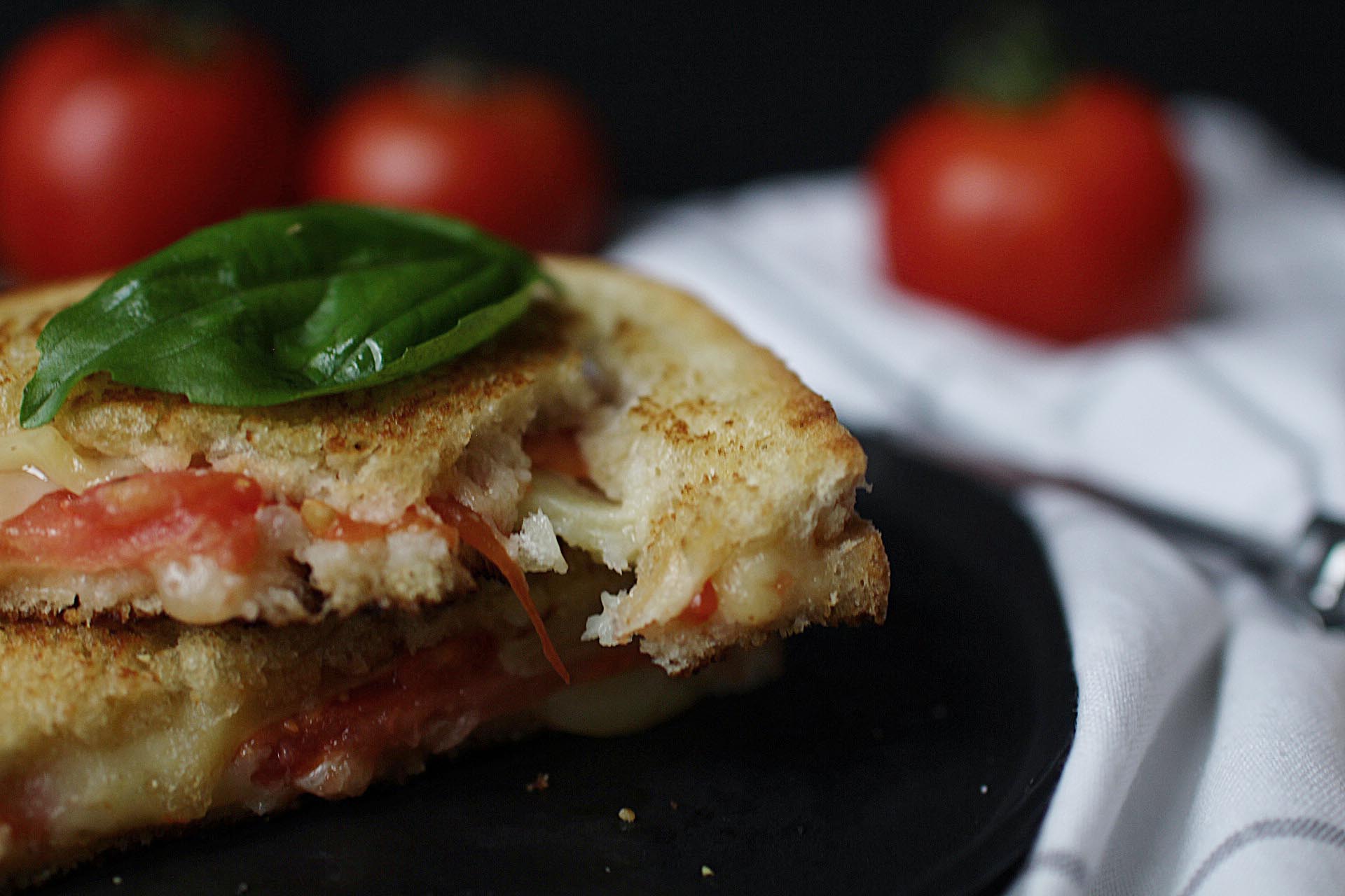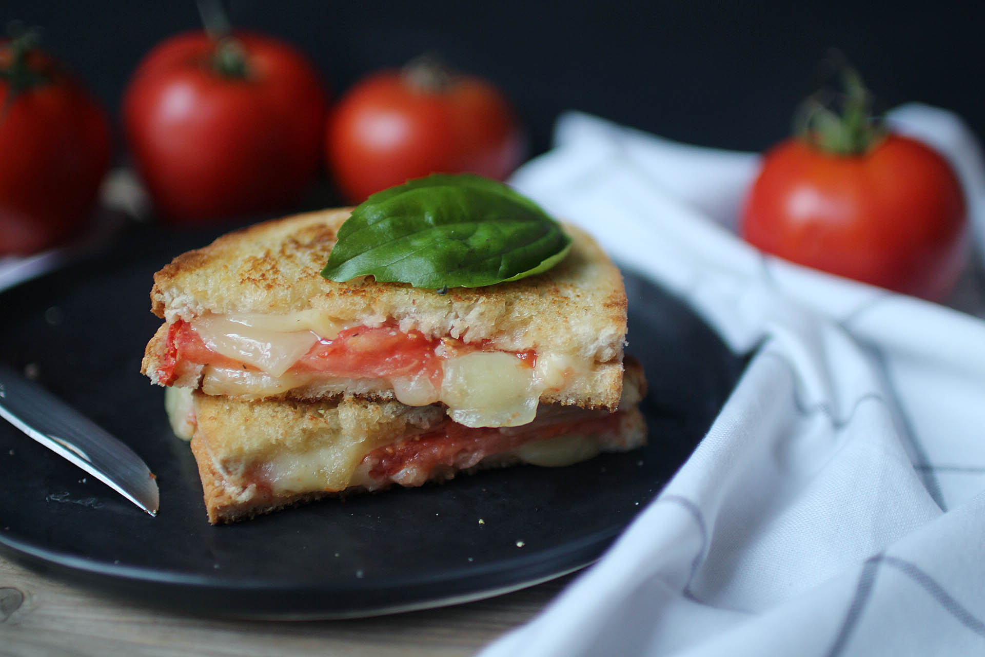 Le pain est essentiel ici : pas de pain de mie de supermarché donc mais du vrai pain tranché et dense de la boulangerie. Choisissez des tomates mûres charnues du marché, de grandes feuilles de basilic frais et pas de fromage tranché mais un bon fromage de brebis ou du comté. Plus le fromage aura de goût et meilleur sera votre grilled cheese.