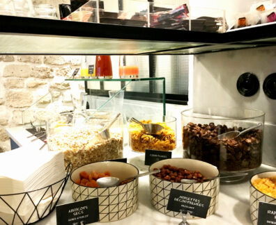 Un distributeur de vin nous permet de nous servir le vin de notre choix (un verre de vin par personne est offert si l’on réserve directement une chambre depuis leur site internet) et tous les soirs, on peut s’offrir le luxe de profiter du buffet de fromage et de charcuterie offert par l’hôtel, autour d’un bon verre !