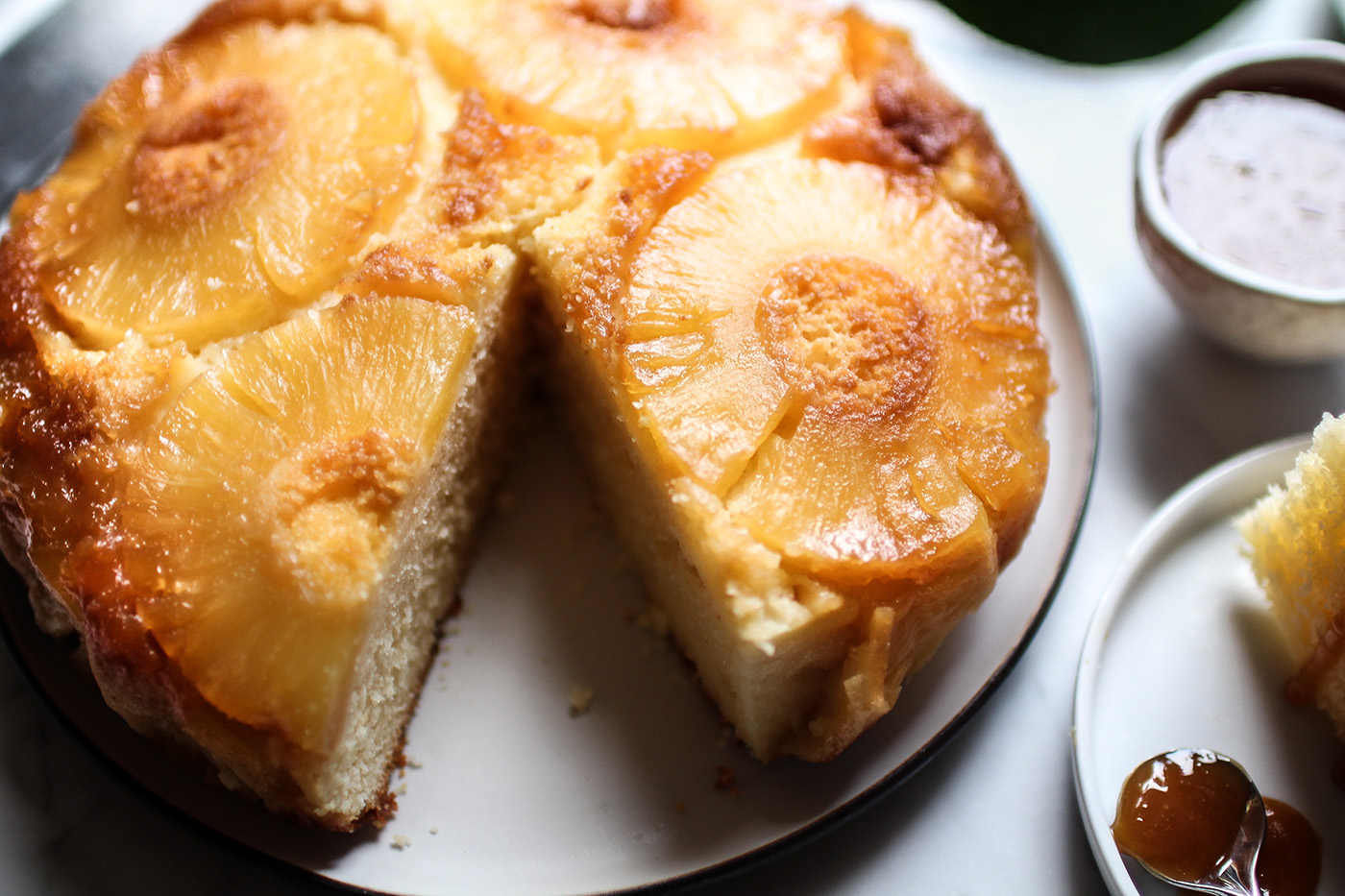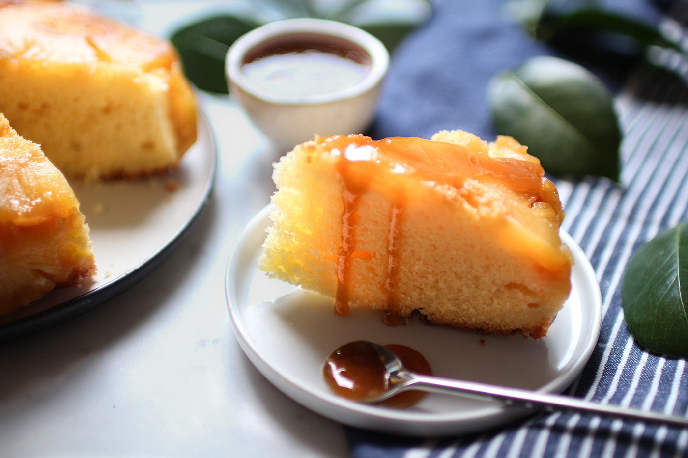 J’aime bien revisiter les gâteaux classiques en y ajoutant un petit quelque chose en plus. Pour celui-ci je n’ai pas changé la recette originale de ma grand-mère mais j’ai suivi une astuce consistant à garder le jus d’ananas pour arroser le gâteau en fin de cuisson pour le rendre plus moelleux et moins sec, et aussi j’ai bien sûr préparé une petite sauce au caramel pour napper le gâteau.