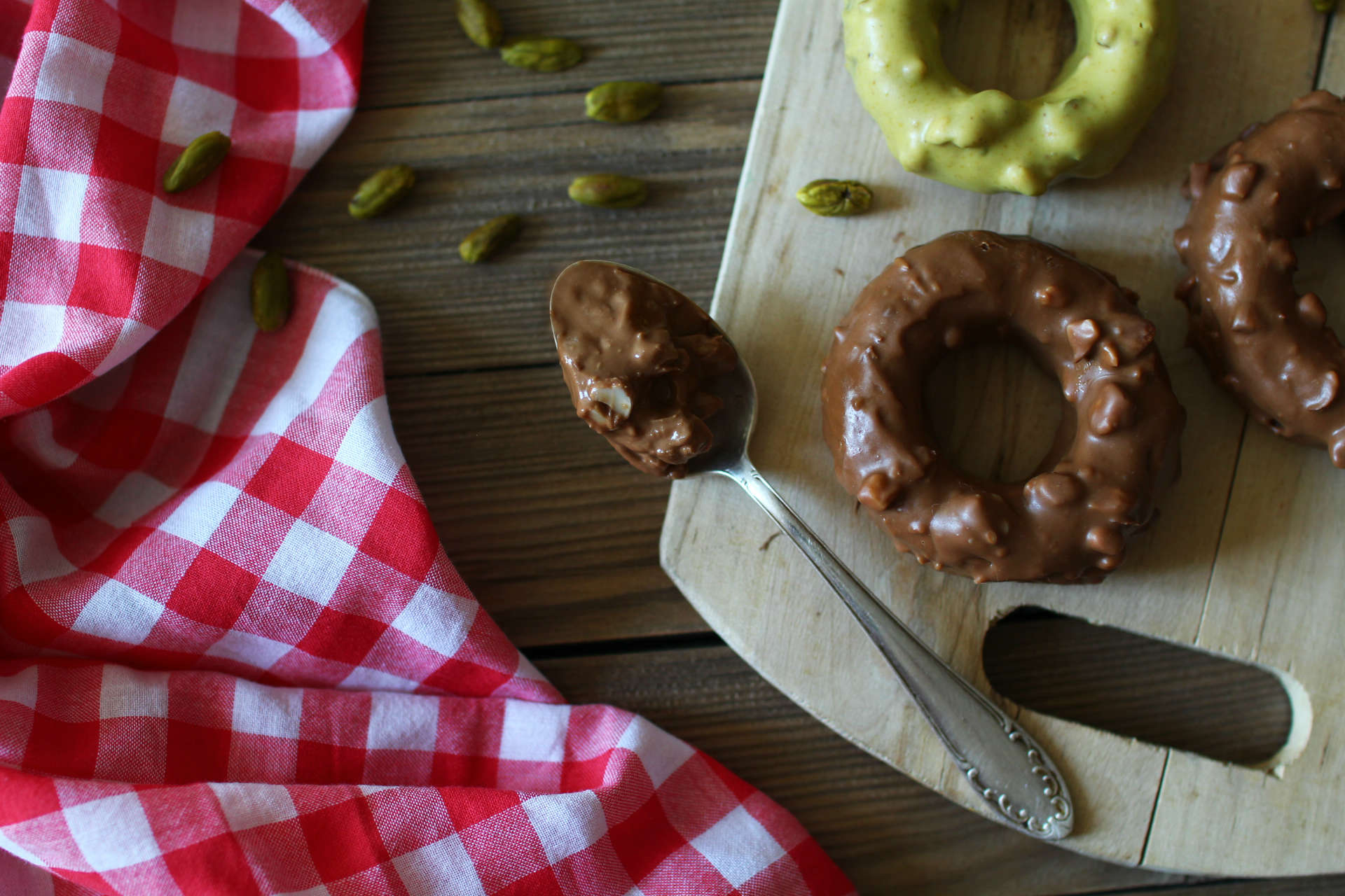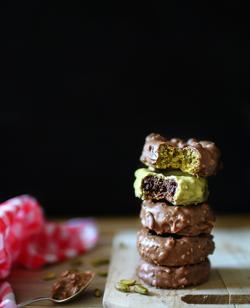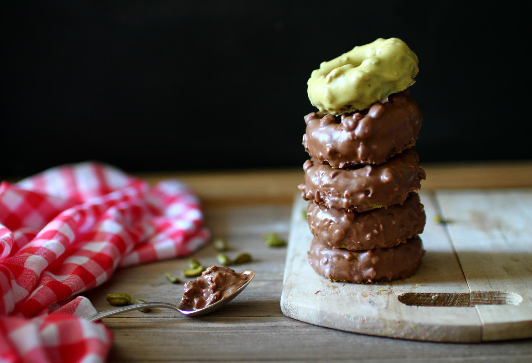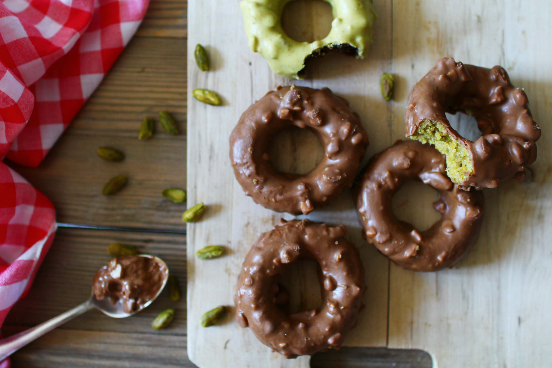 C’est comme ça que sont nés ces petits gâteaux moelleux à la pistache et au chocolat en forme de donuts.