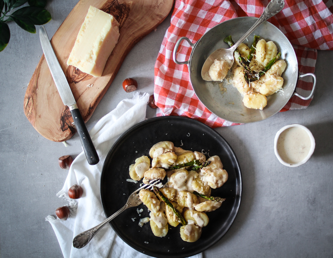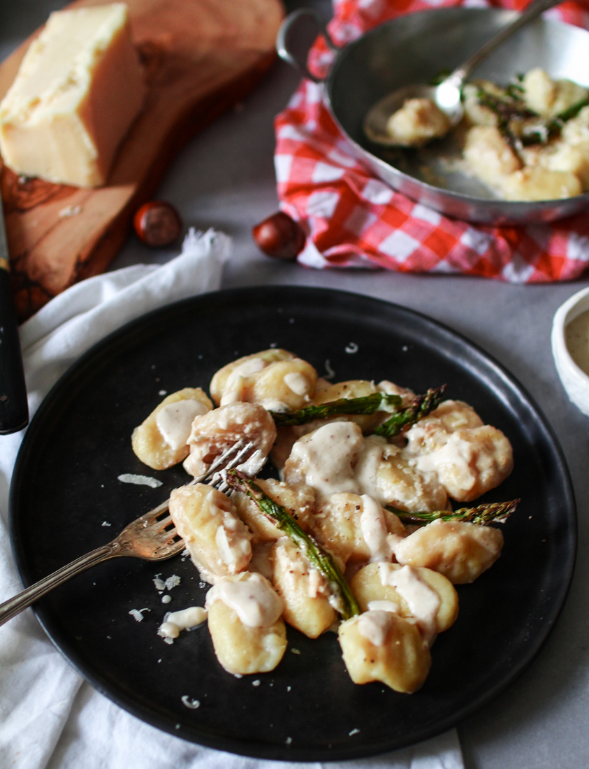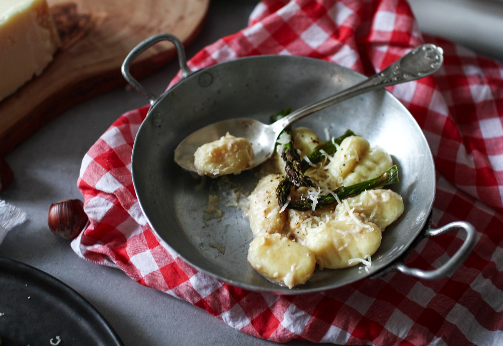 Gnocchis maison au parmesan, noisettes et asperges