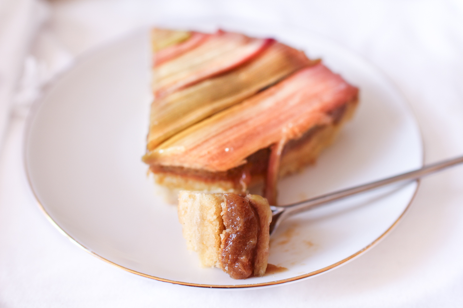 La pâte de rhubarbe est délicieuse, la crème d’amande ultra-gourmande et les lamelles de rhubarbe rôties caramélisées et légèrement acidulées viennent contrebalancer le tout.
