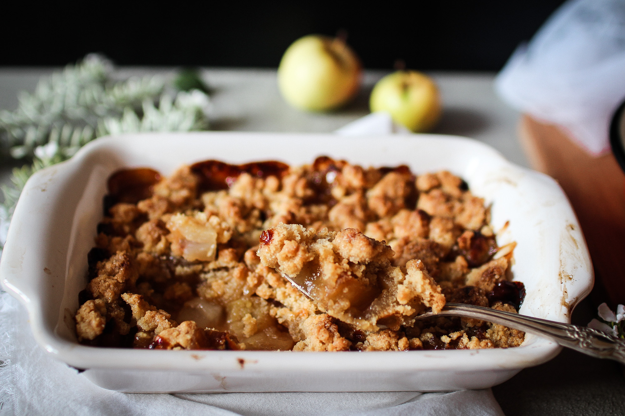 Mieux vaut utiliser deux plats en mettant dans chacun une couche raisonnable de pommes et une couche fine de crumble plutôt que d’essayer de remplir votre plat au maximum avec tous les ingrédients.