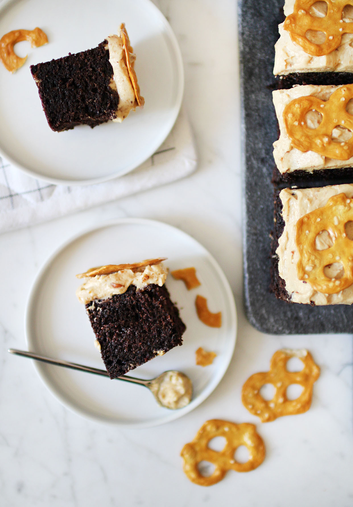 Recette facile de brownie au chocolat avec un glaçage au beurre de cacahuète et aux bretzels – Royal Chill blog cuisine