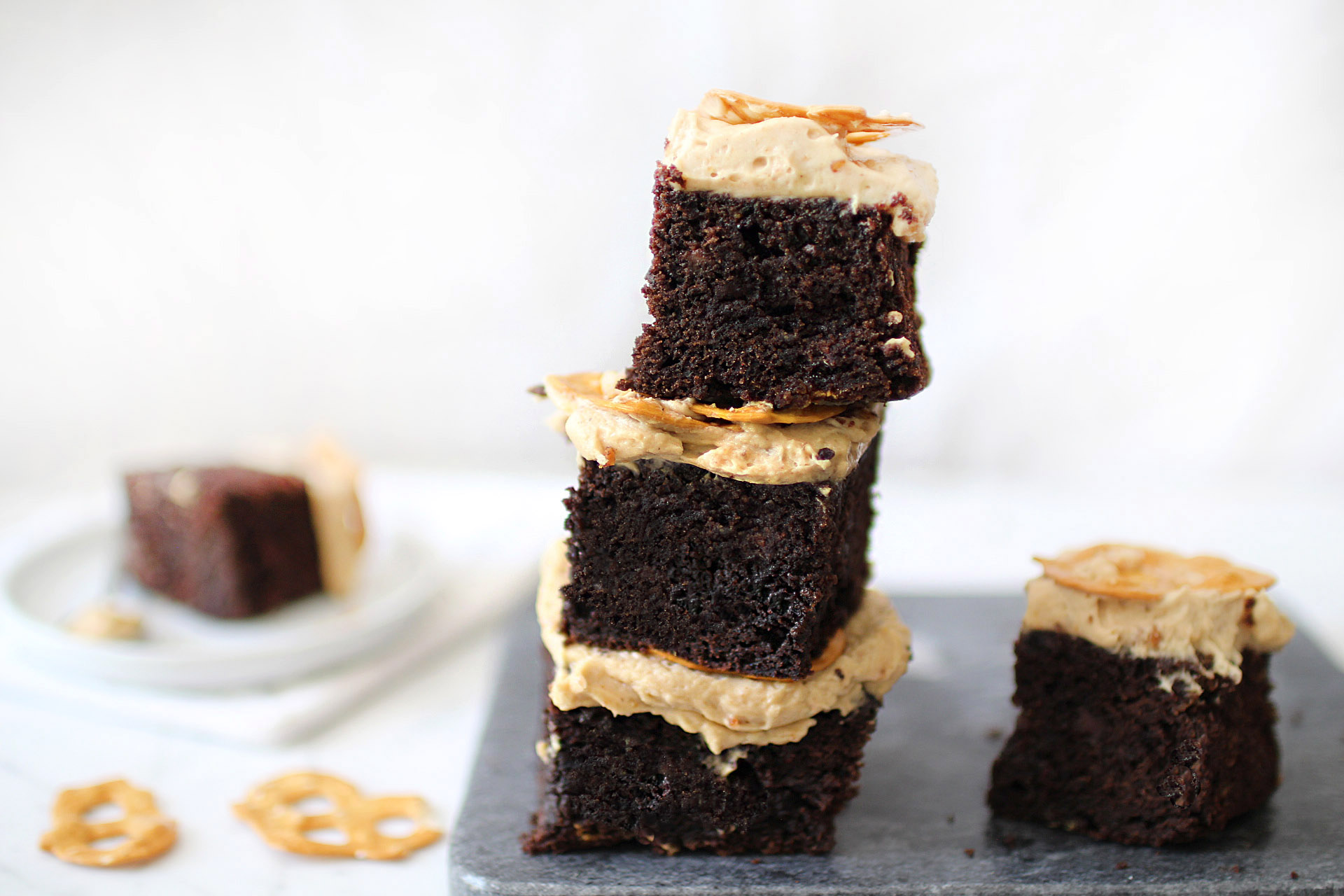 Recette de brownie au chocolat avec un glaçage facile au beurre de cacahuète et aux bretzels – Royal Chill blog cuisine