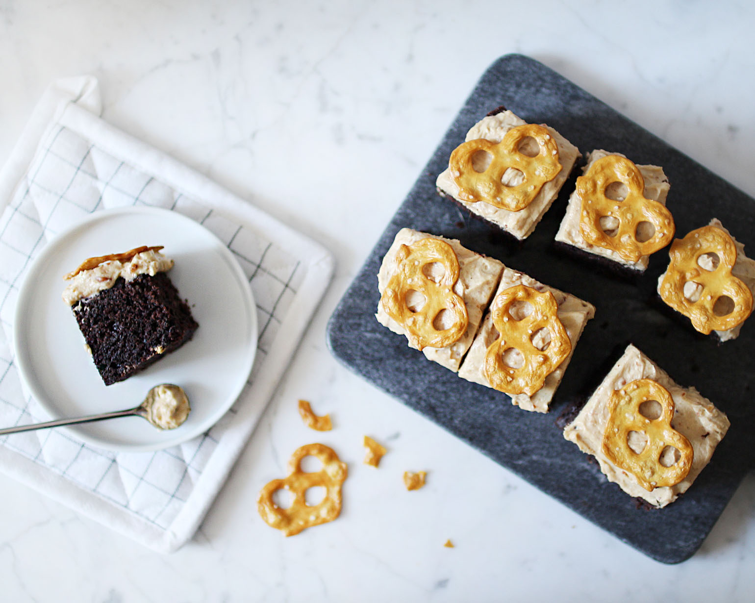 Recette de brownie au chocolat avec un glaçage facile au beurre de cacahuète et aux bretzels – Royal Chill blog cuisine