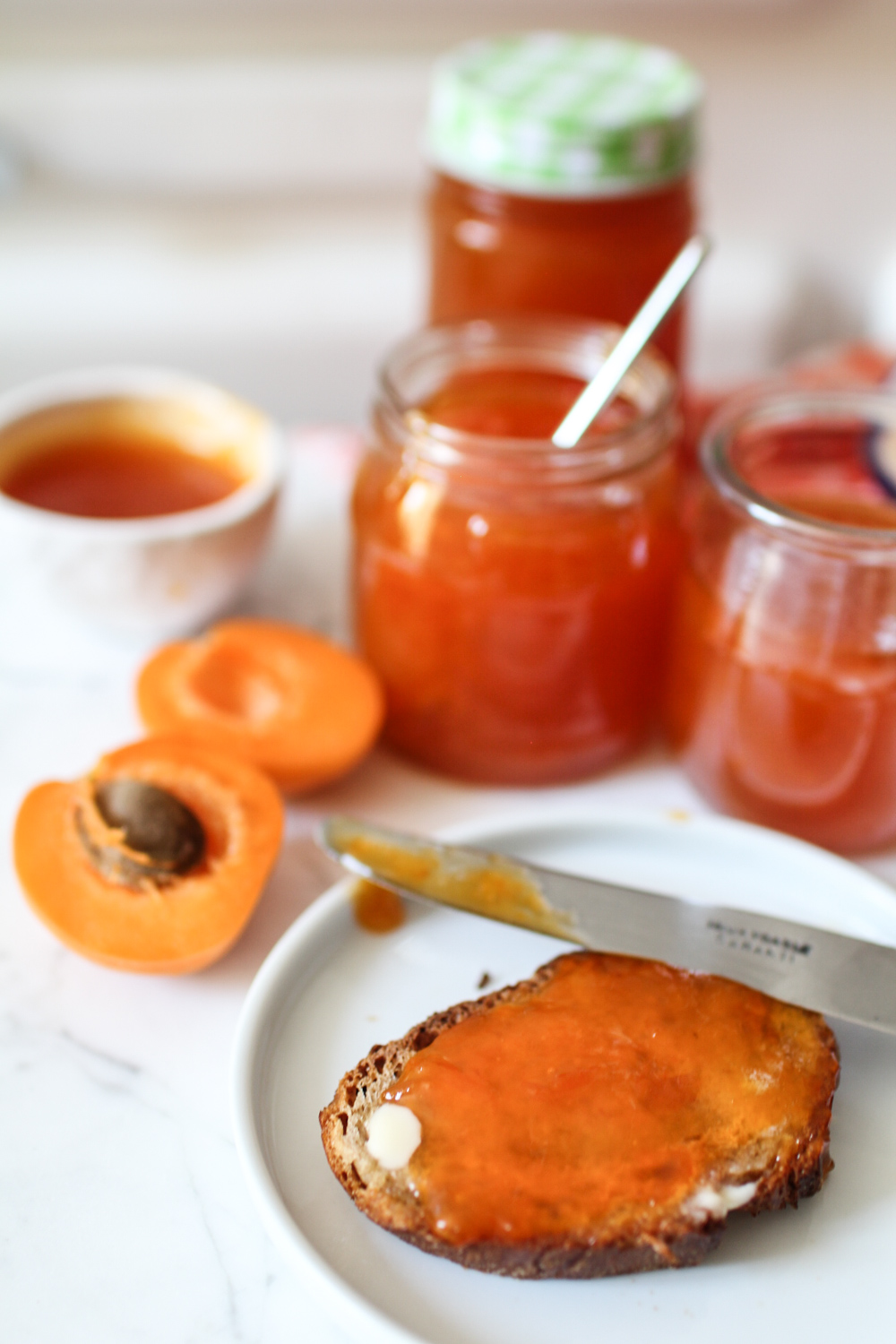 J’ai donc fait ma recette préférée de confiture d’abricot… celle qui s’accorde parfaitement avec mes gâteaux et mes tartines pour le petit-déjeuner.