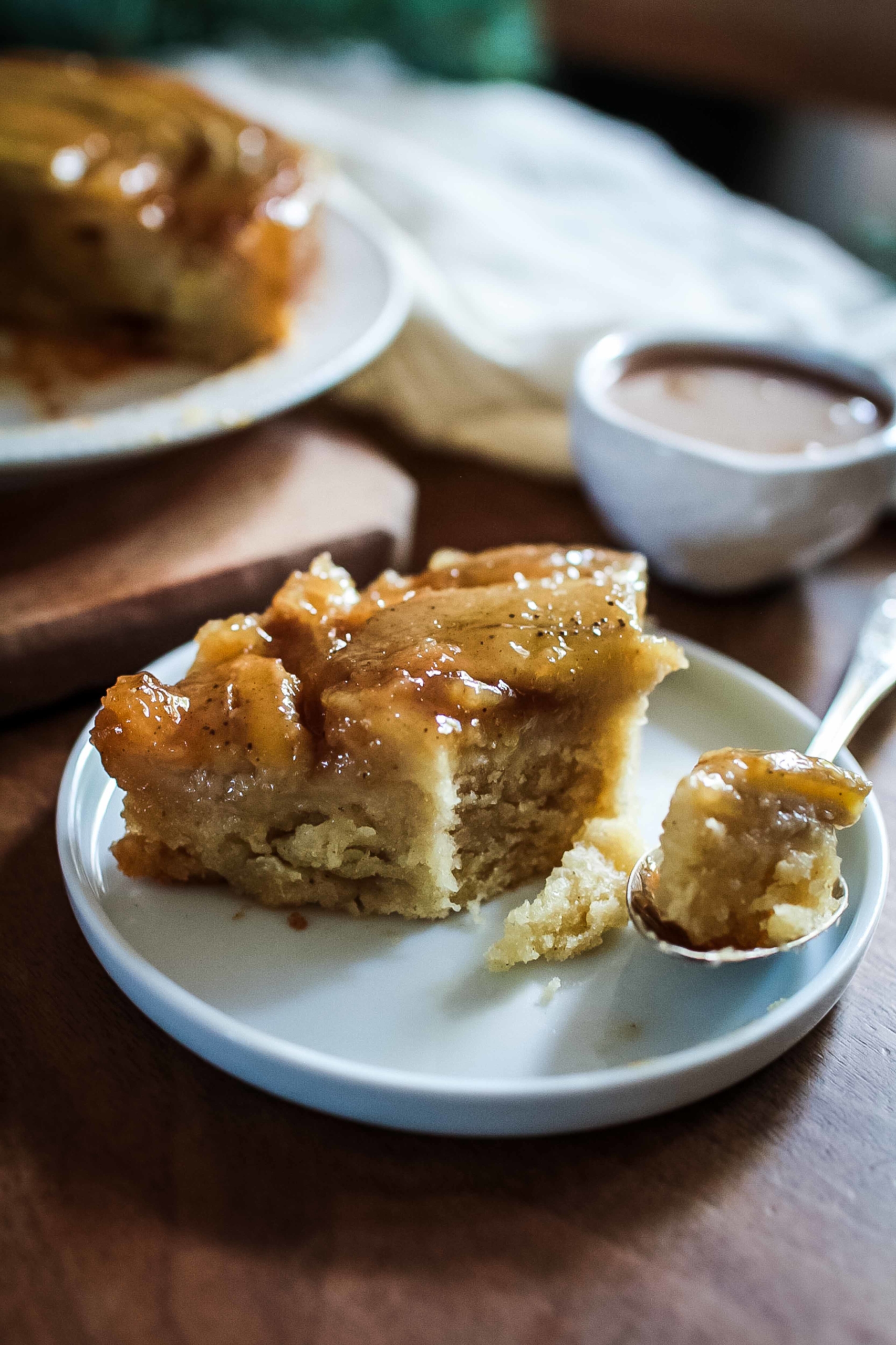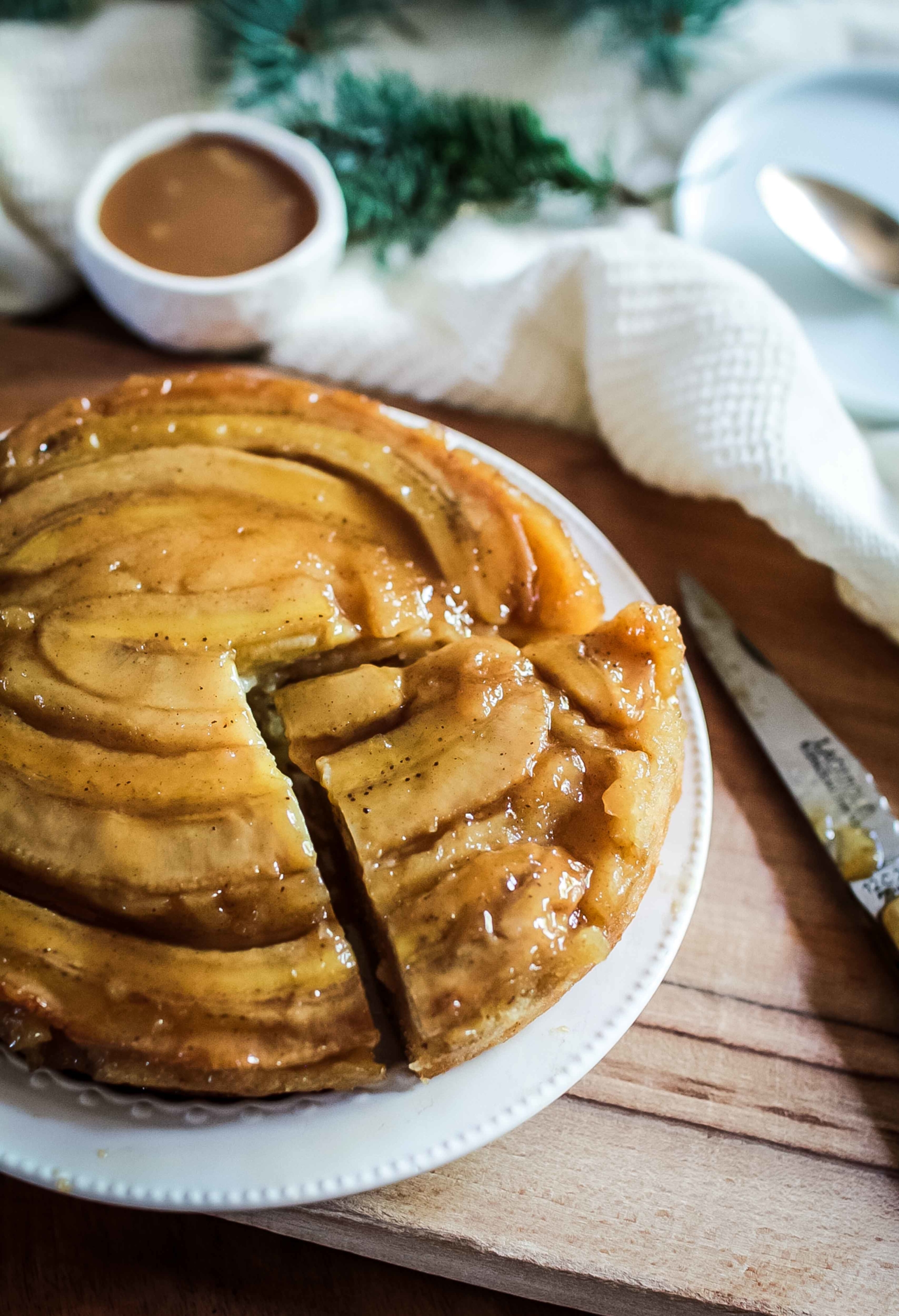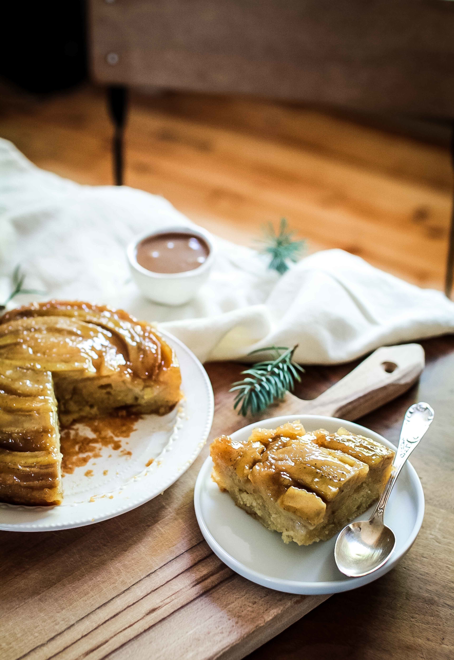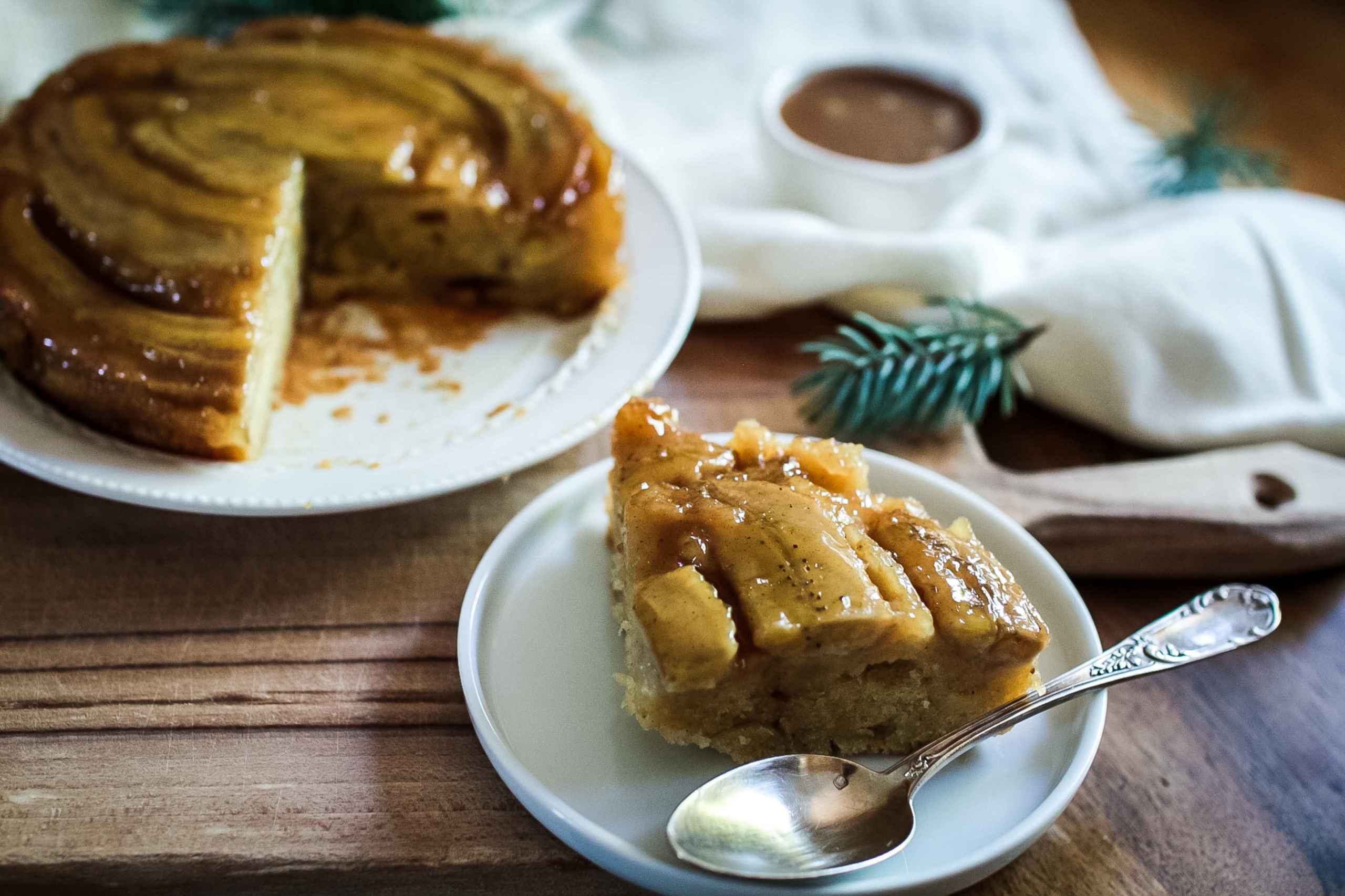 La base de gâteau est inspirée d’une vieille recette de Martha Stewart que j’adore refaire et qui s’accorde avec beaucoup de fruits ! Elle va parfaitement avec ces bananes caramélisées !