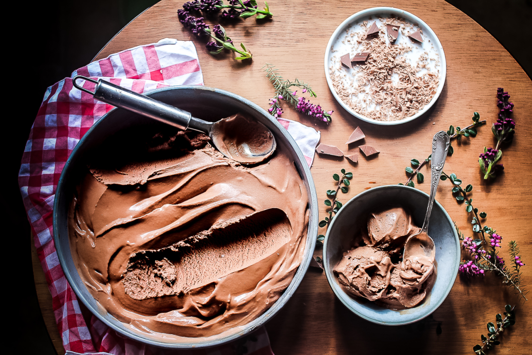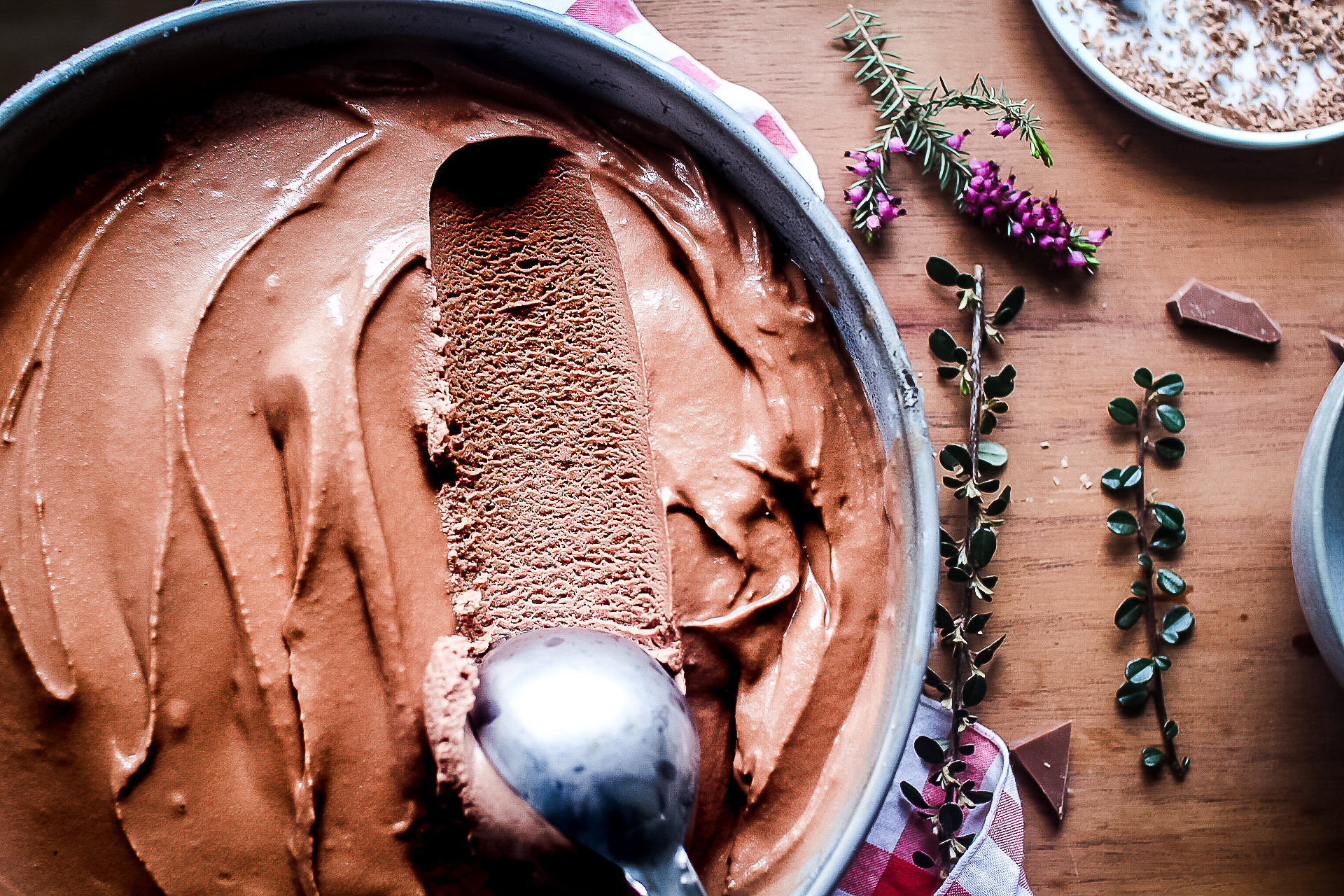 Je trouve que c’est le dessert idéal car il peut se préparer à l’avance et est généralement assez facile à faire. Et si vous avez une bonne sorbetière, vous aurez d’autant plus envie d’en faire. Cette glace au chocolat est réellement à tomber et est surtout extrêmement facile à faire !