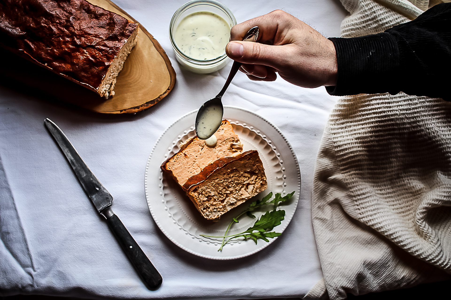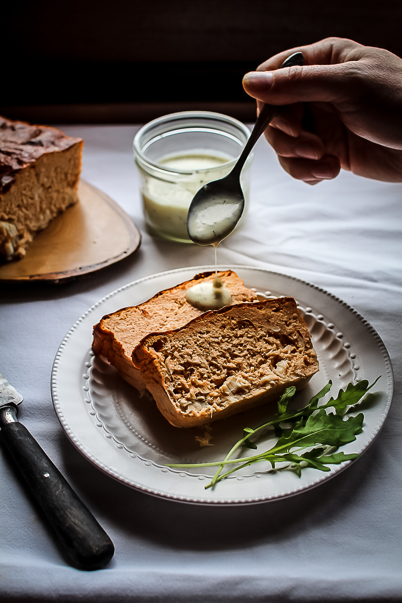 Vous pouvez la servir accompagnée d’une sauce au yahourt (il suffit de mélanger un yahourt avec un peu de crème, d’ail émincé, de jus de citron et d’aneth et le tour est joué !)