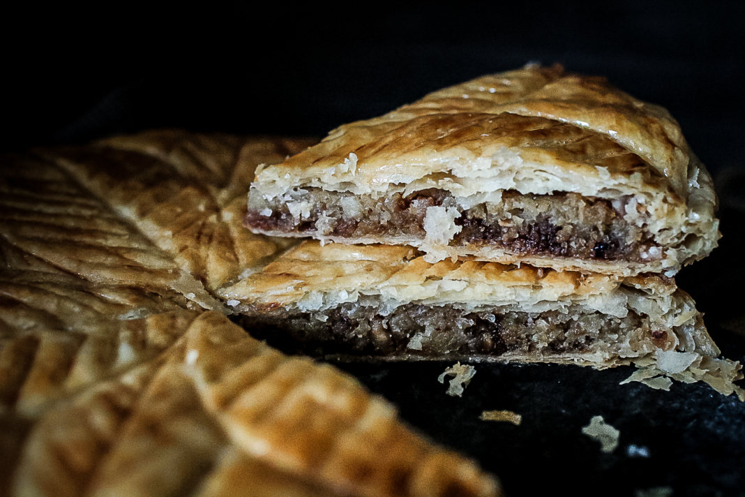 J’ai publié déjà pas mal de recettes de galettes des Rois sur le blog : la classique à la frangipane, l’originale aux noisettes, la décadente aux noix et pommes, et j’avoue que je commence à être à court d’idée niveau garniture !