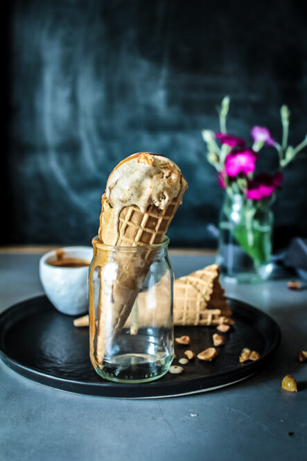 N’hésitez donc pas à utiliser Photoshop, Lightroom (mon préféré) ou tout autre outil d’édition pour améliorer ces aspects. Voici par exemple un avant-après de ma glace préférée aux noisettes pour vous donner une idée !