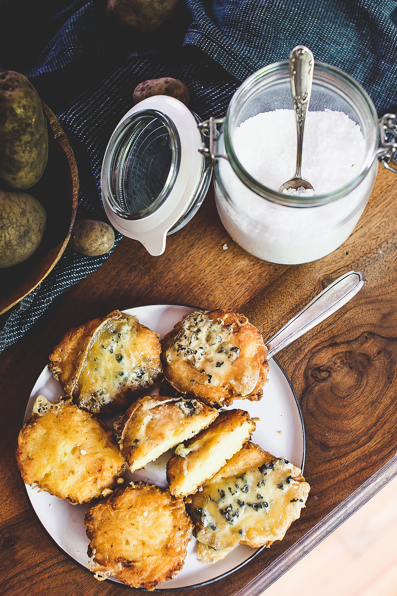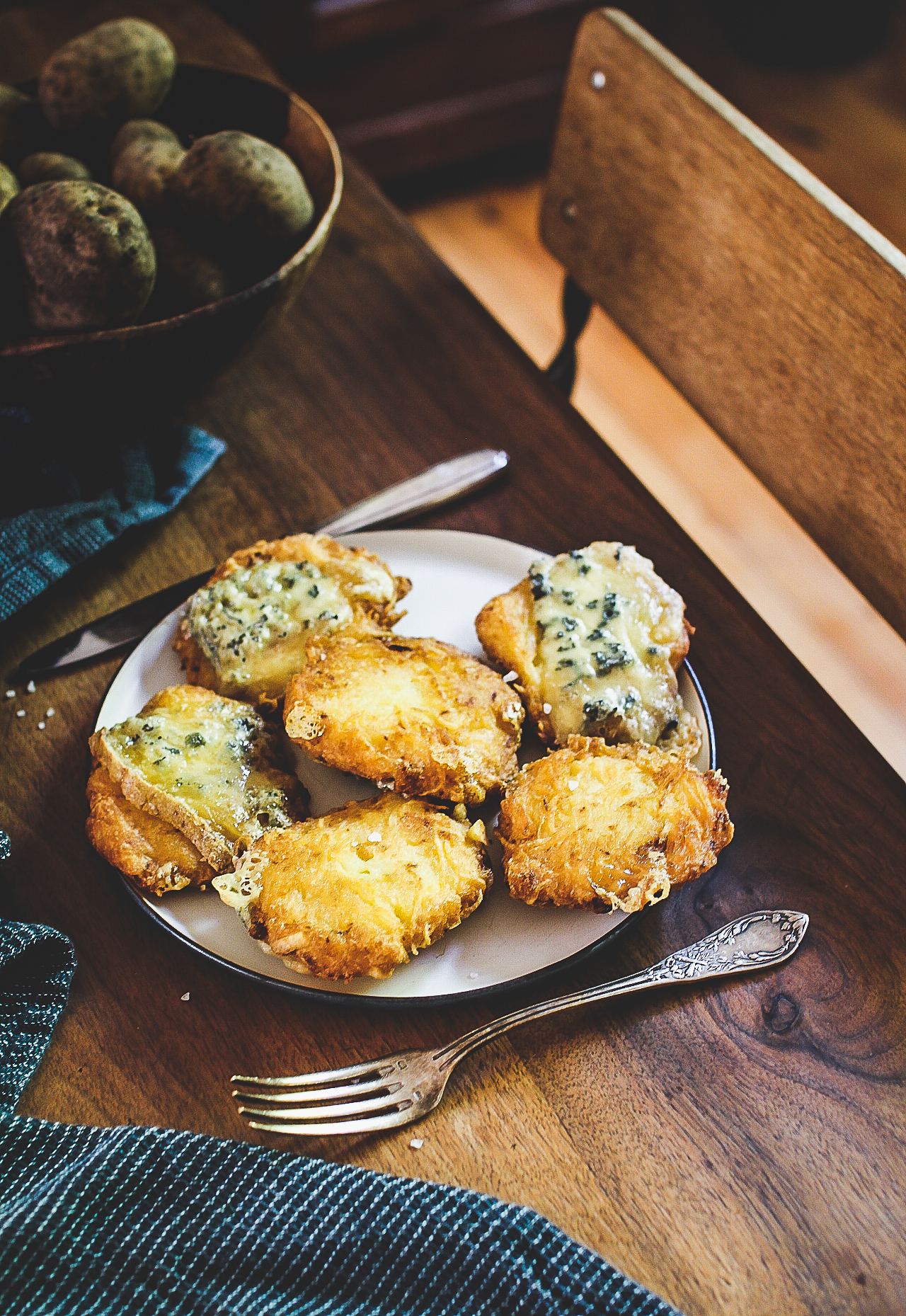 La recette est adaptée du livre New York, les recettes cultes, de Mark Grossman. Comme c’est une recette que j’ai déjà faite des dizaines et des dizaines de fois, j’y ai apporté mes modifications personnelles, à savoir diminuer la quantité de purée par rapport aux pommes de terres râpées crues et ajouter un peu d’oignon. Libre à vous de les faire à la fourme ou non. La recette classique n’en contient pas du tout mais j’aime rajouter du fromage par-dessus. D’ailleurs si vous n’aimez pas la fourme, vous pouvez aussi les faire au brie, à la tomme ou même au brie à la truffe (j’ai essayé ça la semaine dernière, c’est à tomber !)