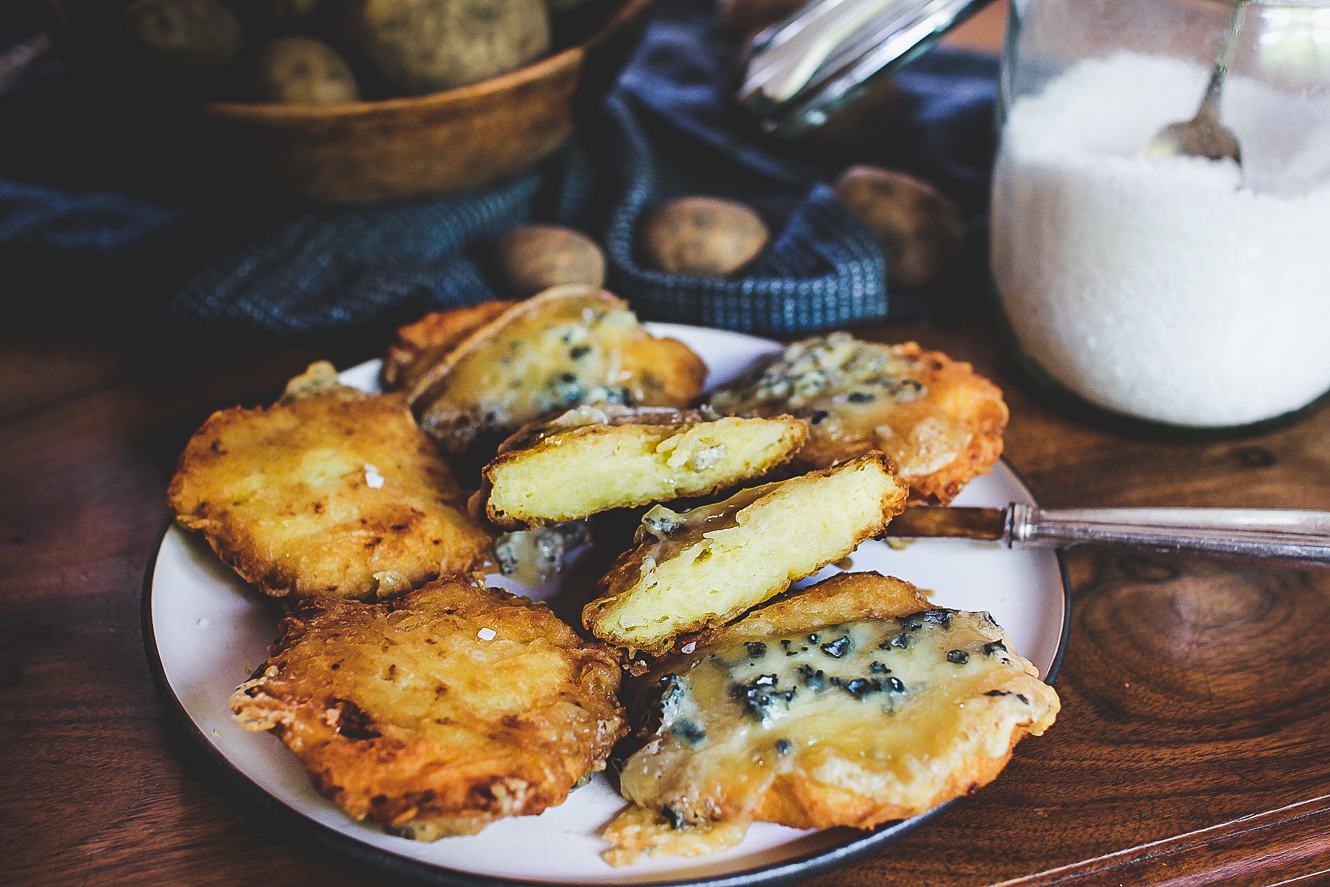 Elles sont faites à base de pommes de terres râpées, d’oignons, d’oeufs et de purée, ce qui leur donne une texture croustillante et bien moelleuse à la fois (l’extérieur est croustillant et l’intérieur est fondant). Elles sont ensuite frites.