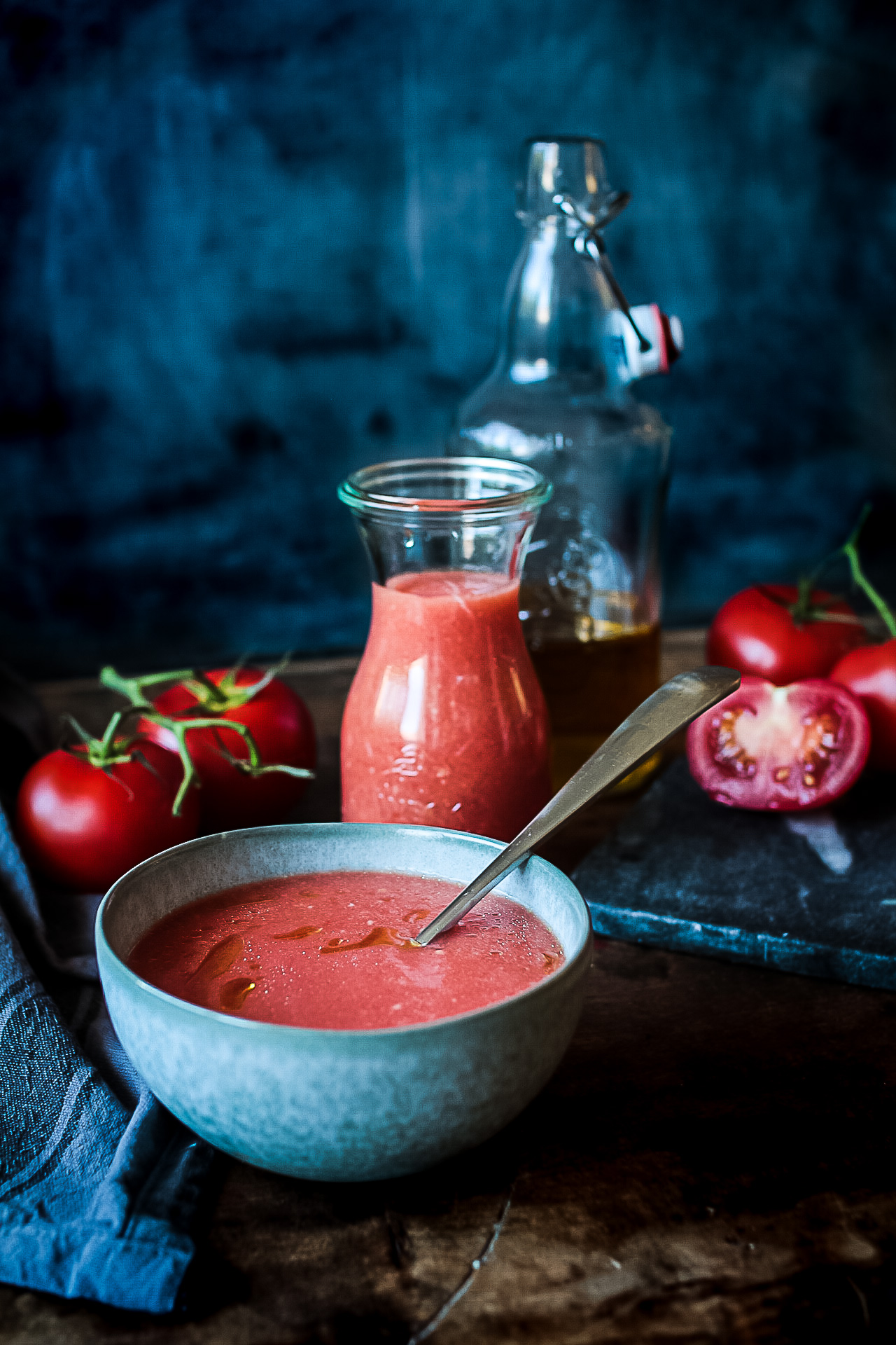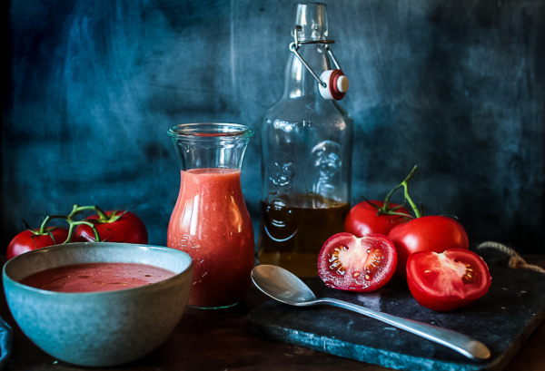 C’est vraiment une recette économique que l’on peut faire lorsque l’on a des tomates mûres à utiliser. J’adore en faire en été : cela fait partie de ces recettes que l’on peut consommer bien pour l’apéritif, qu’en entrée ou même à tout moment de la journée. C’est léger, rafraîchissant et vraiment très bon ! Tout comme le gaspacho, j’aime le déguster avec des glaçons pour un côté encore plus frais mais en Espagne il se consomme traditionnellement avec un peu d’œuf dur et de jambon serrano (que l’on parsème sur le dessus au moment de servir).