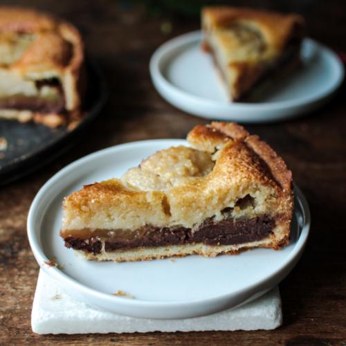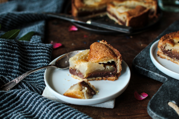 Une recette complètement décadente de tarte aux poires, au chocolat et aux amandes : un délice !