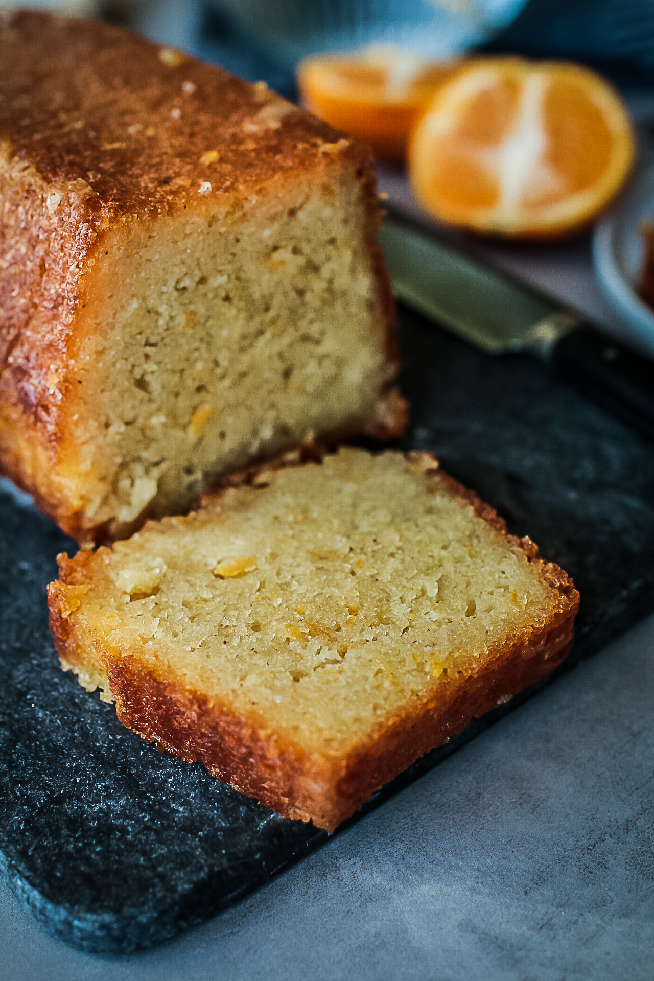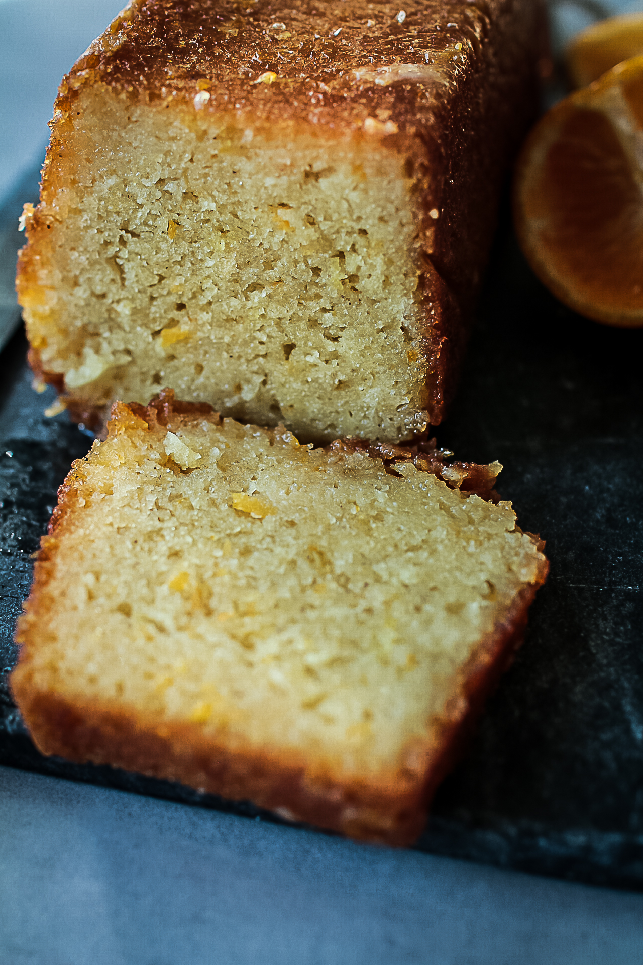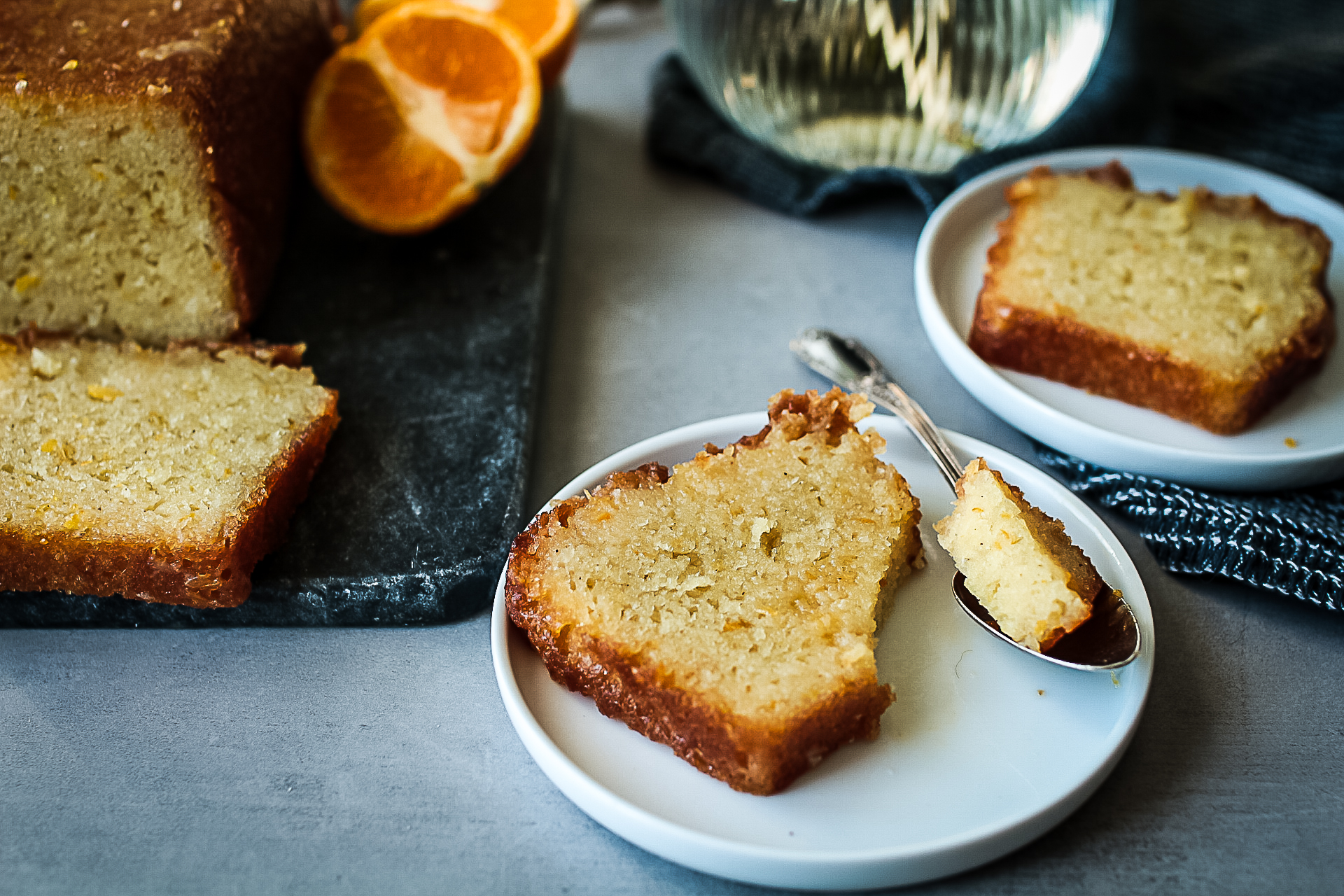 Pour l’avoir refait plusieurs fois, j’ai comme elle, baissé légèrement la quantité de sucre, mais j’ai aussi choisi de diminuer un peu la quantité de matières grasses. J’ai également utilisé des zestes de clémentines bio ramenées d’Italie à la place des oranges et j’ai modifié quelques autres petites choses. Contrairement à Valérie, j’utilise du papier cuisson pour chemiser le moule et je verse le sirop dans le moule pour que chaque recoin de ce cake soit parfaitement imbibé de sirop.