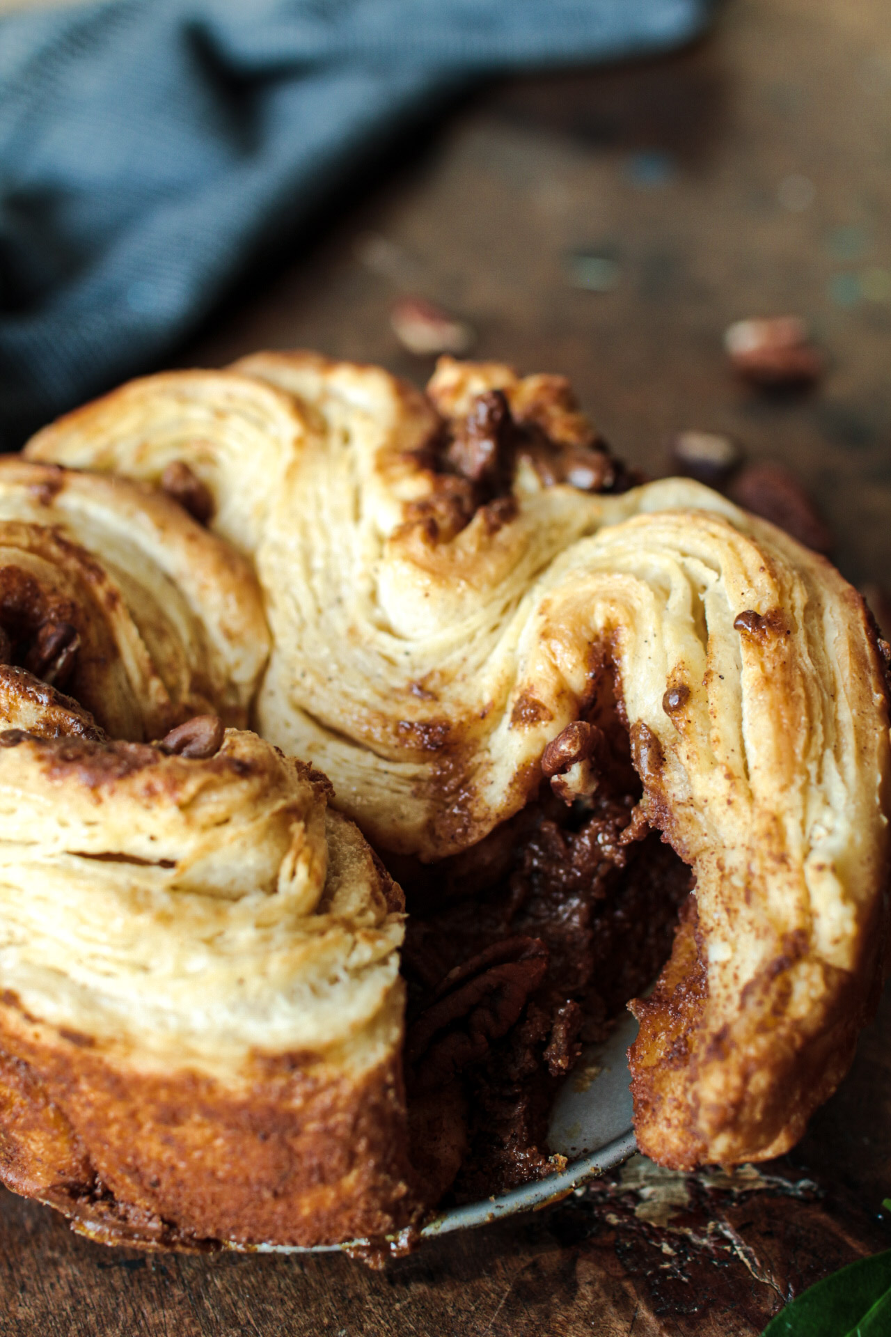 La brioche feuilletée est tout simplement une pâte que l’on va plier et replier pour obtenir un feuilletage : différentes couches de pâtes donc. C’est un peu la même technique que pour faire une pâte feuilletée ou pour faire une pâte à croissants. Je vous invite à lire ma recette sur la brioche feuilletée de Yann Couvreur si vous voulez plus de détails sur sa réalisation et sa réussite. Il s’agit en fait de la même recette mais qui comprend un fourrage en plus.
