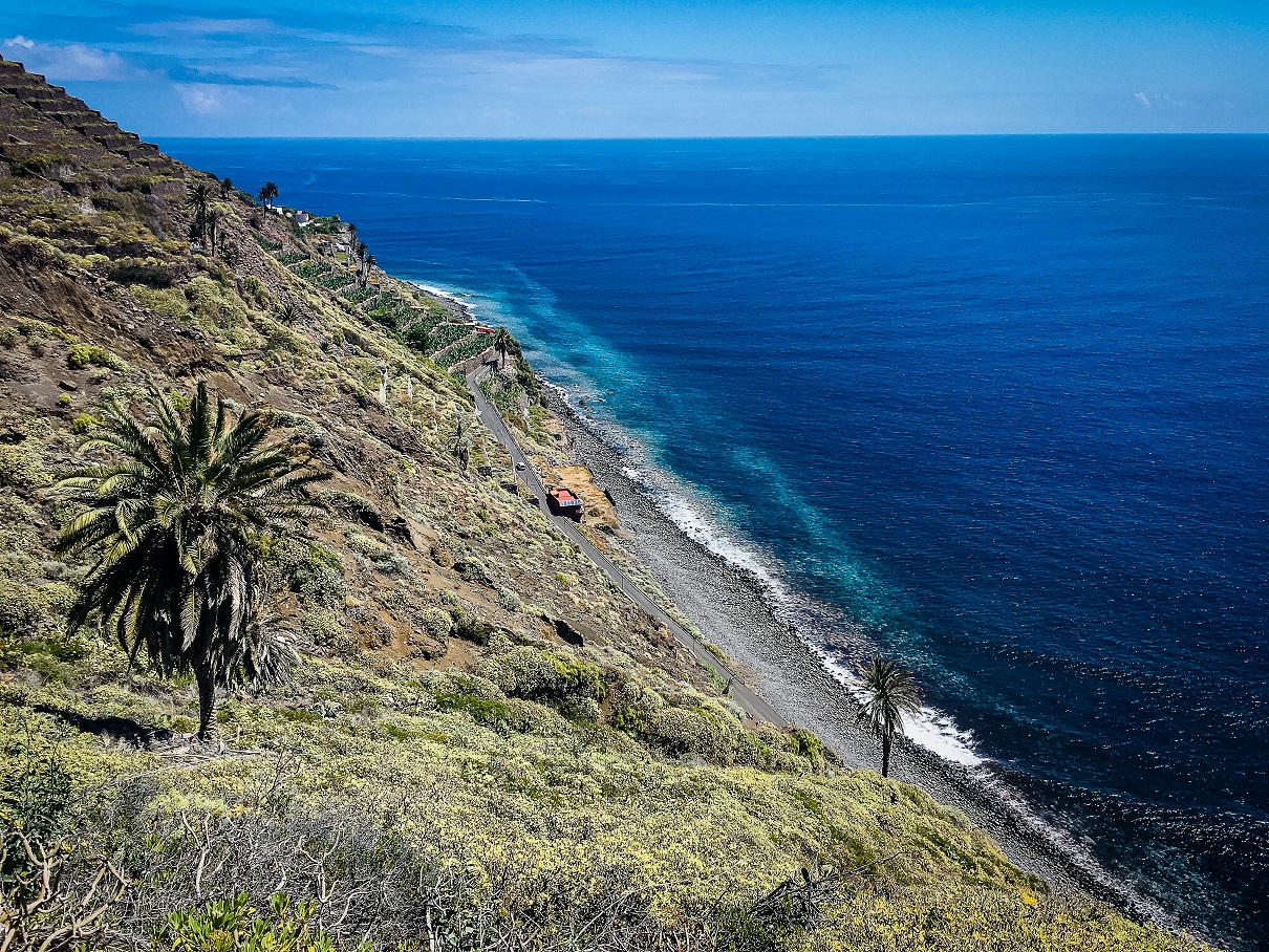 Hermigua se situe dans la partie la plus humide de l’île, au Nord, près d’Agulo, vous passerez donc par là si vous vous rendez à Agulo (dont je parle aussi un peu plus bas !) On peut y voir des vallées luxuriantes et des bananiers de partout ! Sur la route vers Agulo vous pourrez voir la mer et la vue ci-dessous !