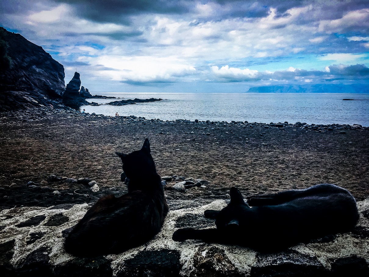La plage de la Alojera quant à elle (sur les photos où il fait beau, ci-dessous), n’est pas une plage de sable, mais elle offre une superbe vue. Toutes les plages sont des plages de sable noir !