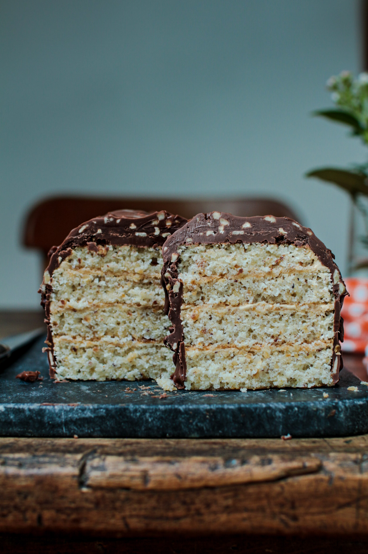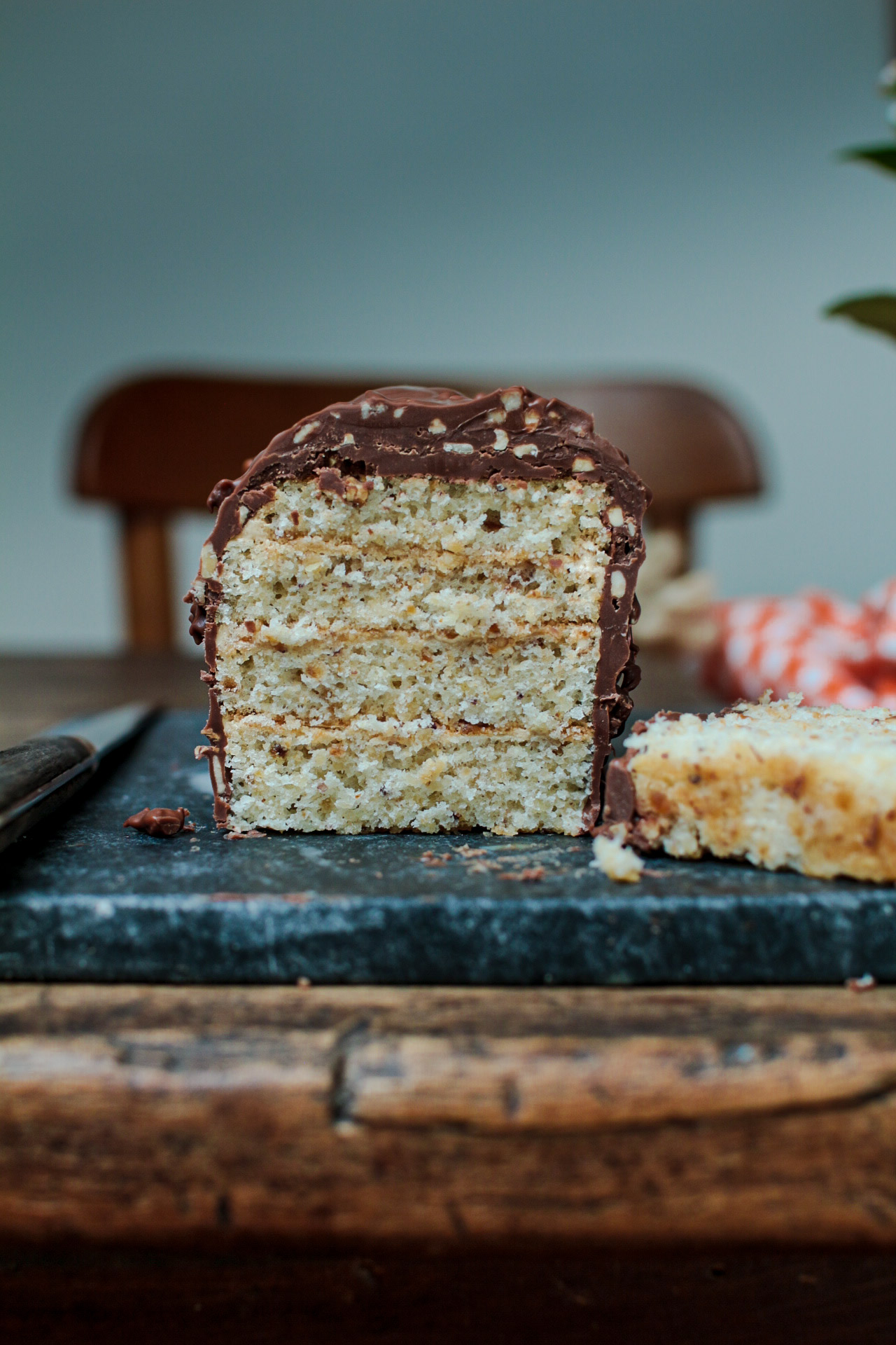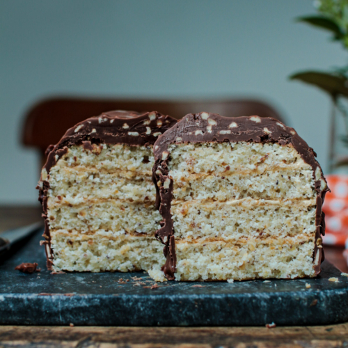 La recette du gâteau provient du livre I love cakes de Trish Deseine. C’est une recette qui peut se décliner avec des amandes, des noix de pécan ou des noix.